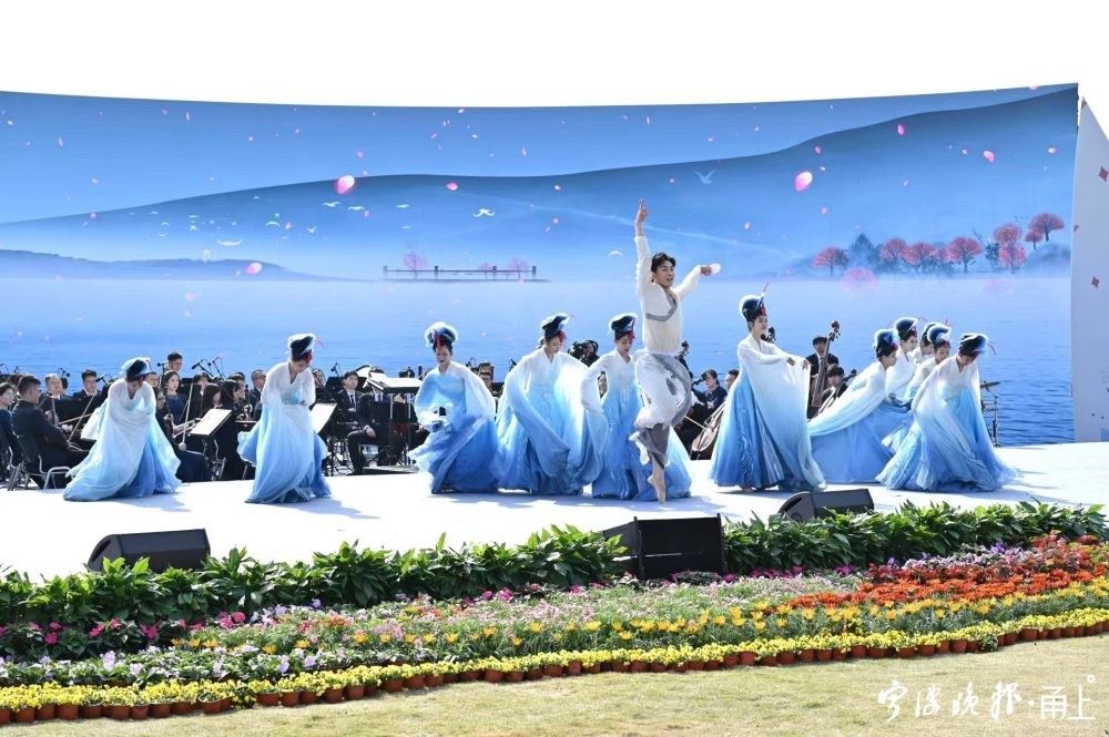 群舞《惊蛰》是当天最让人惊艳的节目。这支舞蹈由中国歌剧舞剧院孔德辛导演全新创作,“白鹭”在湖光山色中翩翩起舞,构成一幅富有生命力的水墨画卷。挺拔婀娜的春日之美,呈现出宁波作为全国生态城市的独特神韵。