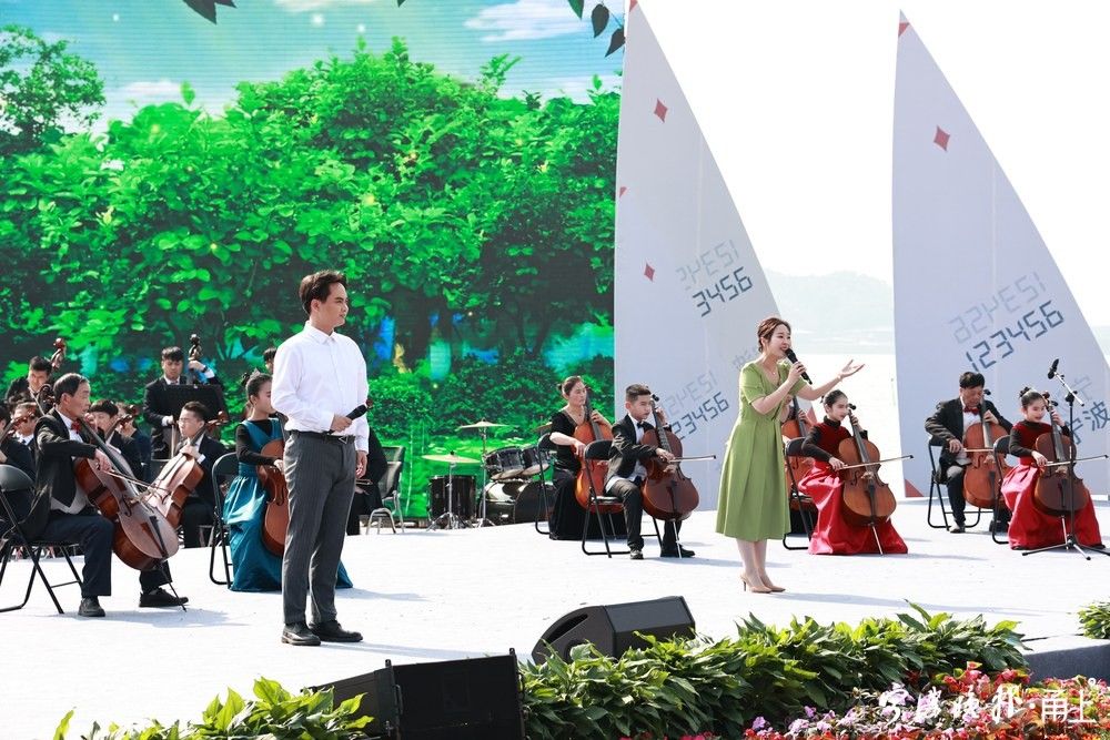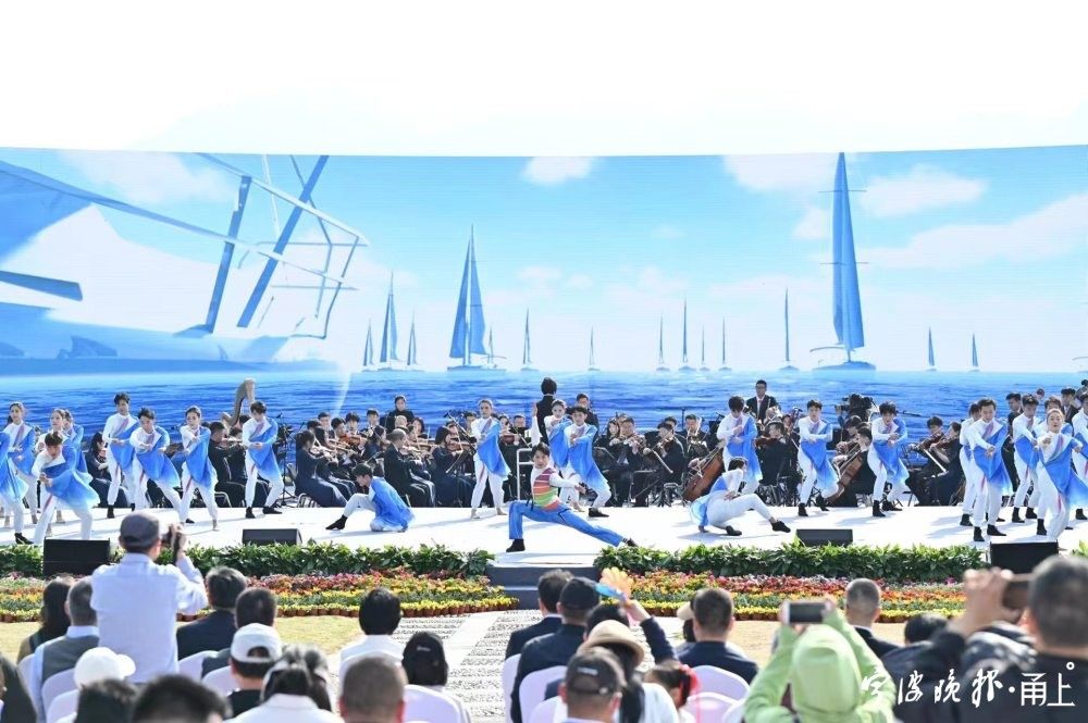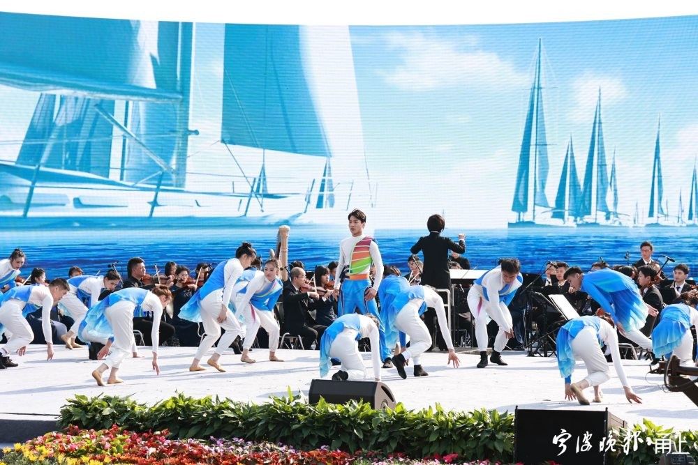 今年是亚运会年。演出尾声,东钱湖运用现成“帆船”元素,创意融合海洋文化、海丝文化等内容,实现了“千帆竞发”的磅礴画面。大气热烈的歌舞,展现了“滨海宁波,扬帆世界”的宏大图景。