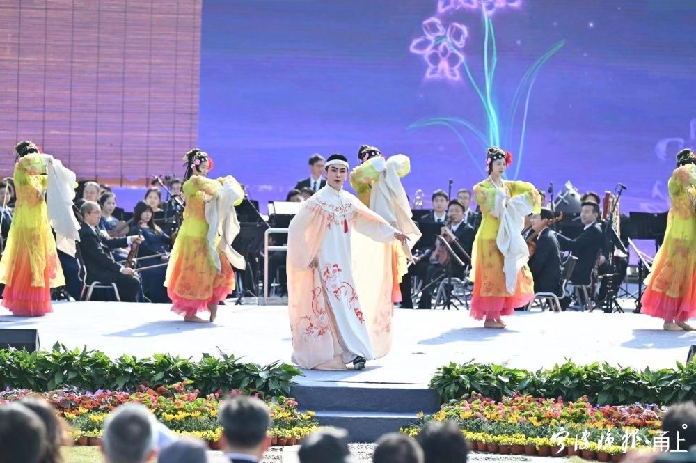 当天的节目编排注重传统与当代的结合。宁波大学云雀乐队带来许巍的《空谷幽兰》,电吉他旋律宛如洞开的心灵,照见“明珠一颗,尘尽光生,照破山河”的辽阔意境;戏歌《新拔兰花》则由宁波市甬剧团当家小生贺磊带来。