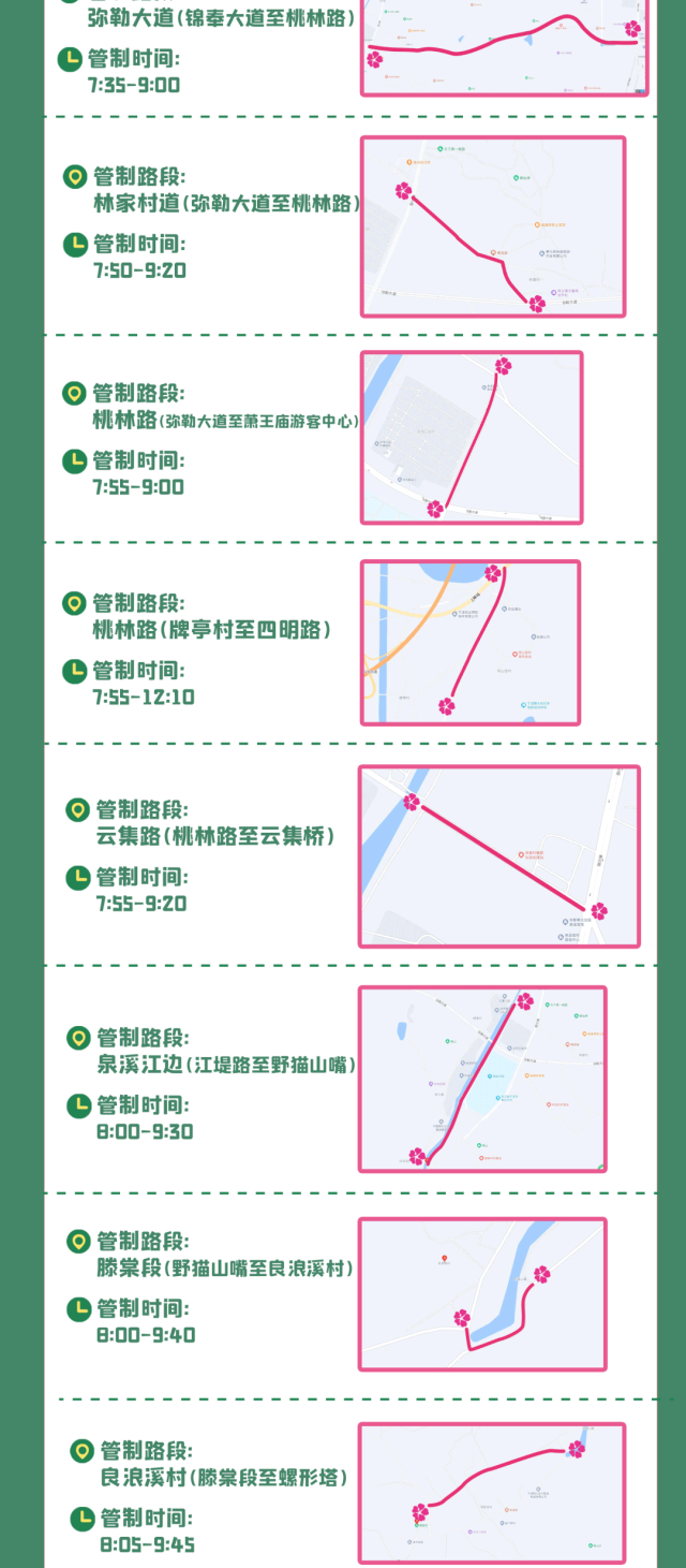 (1)赛前:奉化区政府(东门路)—东门路—锦屏南路—锦屏中路—中山路—中山东路—岳林广场北;