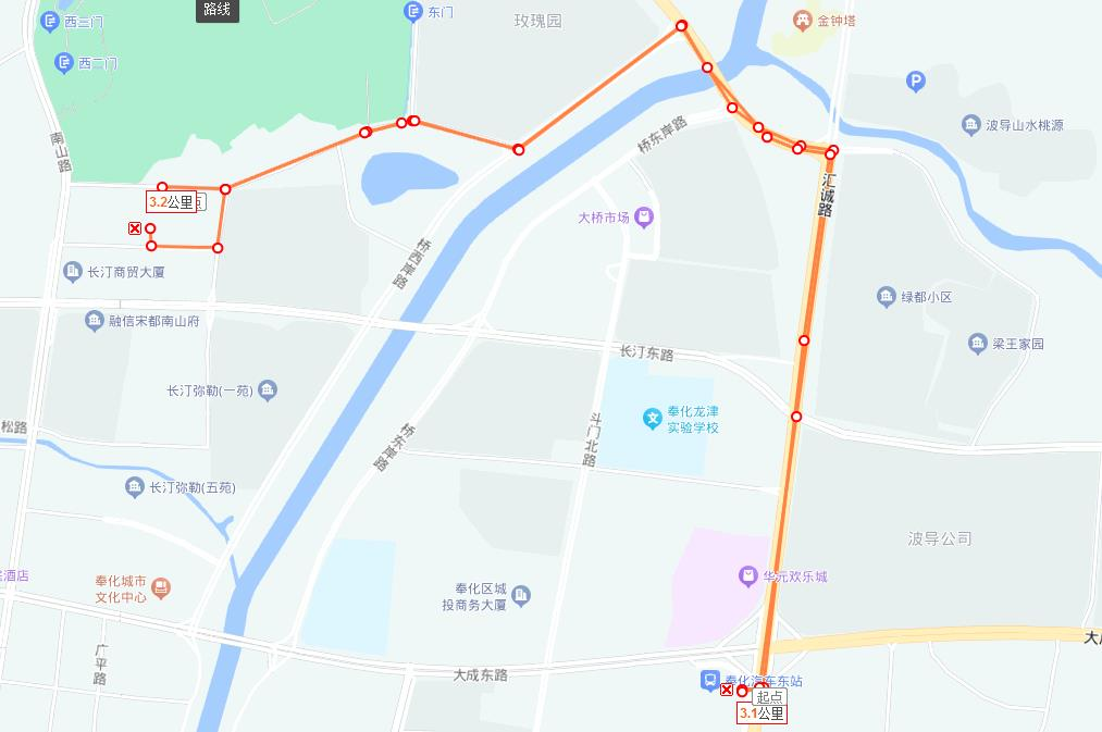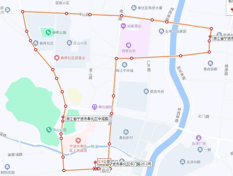 1.线路走向:公交溪口站—中兴东路—弥勒大道—大成路—大成东路—奉化体育馆。
