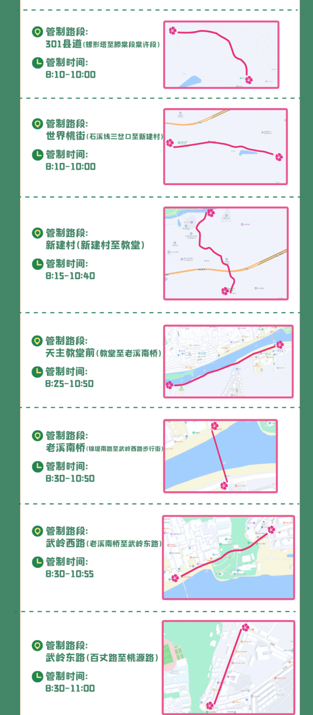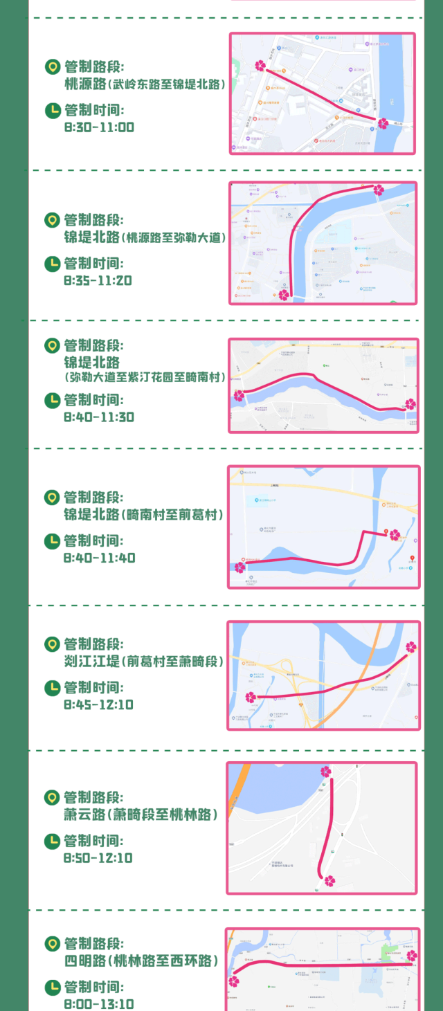(2)赛后:岳林广场北—十亩亭弄—岳林东路—南山路—东门路—锦屏南路—锦屏中路—中山公园(人民医院)。