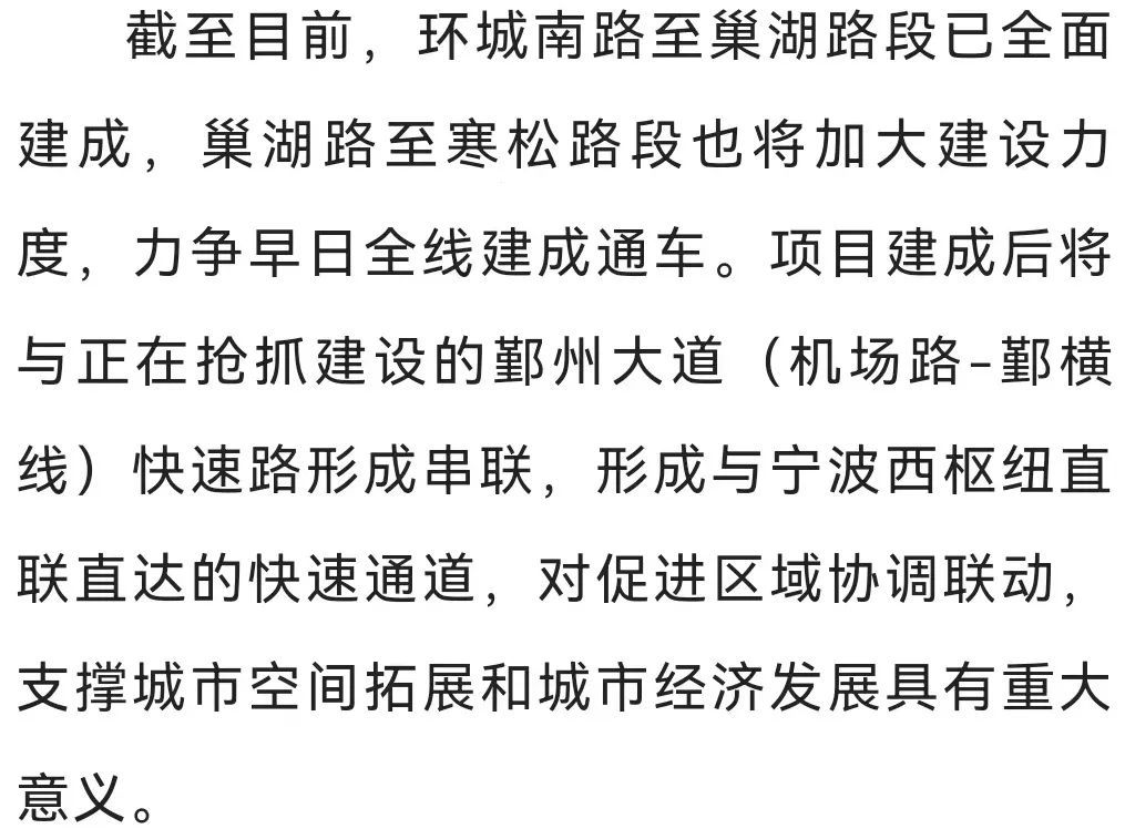 今天,小编从宁波市住建局获悉,鄞州大道-福庆路(东钱湖段)快速路一期工程祥和东路至巢湖路段通过初步验收。一起来看↓