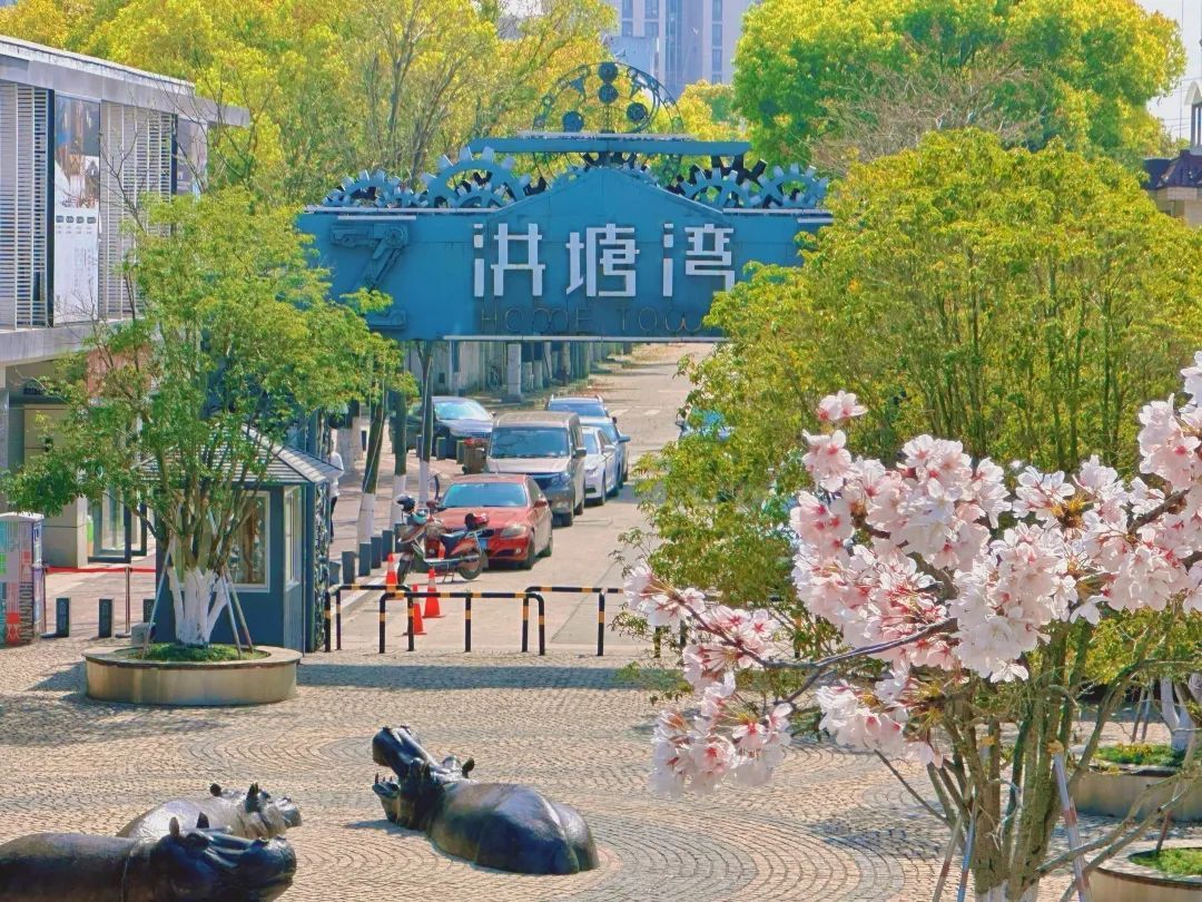 小桥流水、粉花绿树。近日,江北洪塘湾公园已经迎来了樱花的盛花期。河畔盛开的樱花向上而生,微风拂过,花瓣雨裹挟着阵阵花香,沁人心脾。
