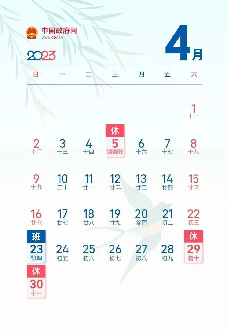 这周上班时间有变:4月5日(周三)是清明节,放假1天,不调休。