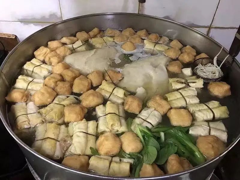 在面结面店里,大铁锅里丢入一捆捆的面结,十来只油豆腐,漂浮在水面沸腾不息。