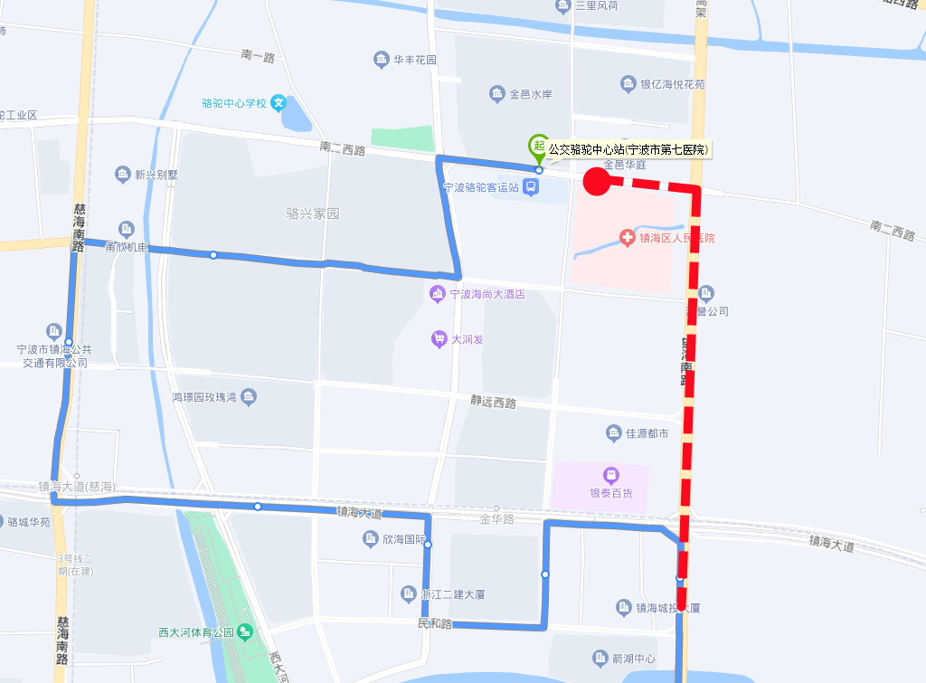 1、改道走向:慈海南路南二西路口后改走南二西路、望海南路至望海南路镇海大道口后恢复原线运营。