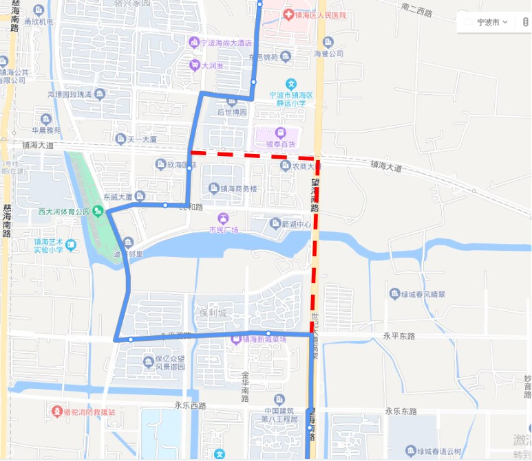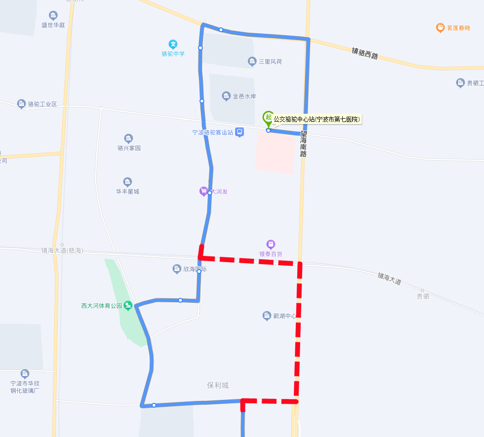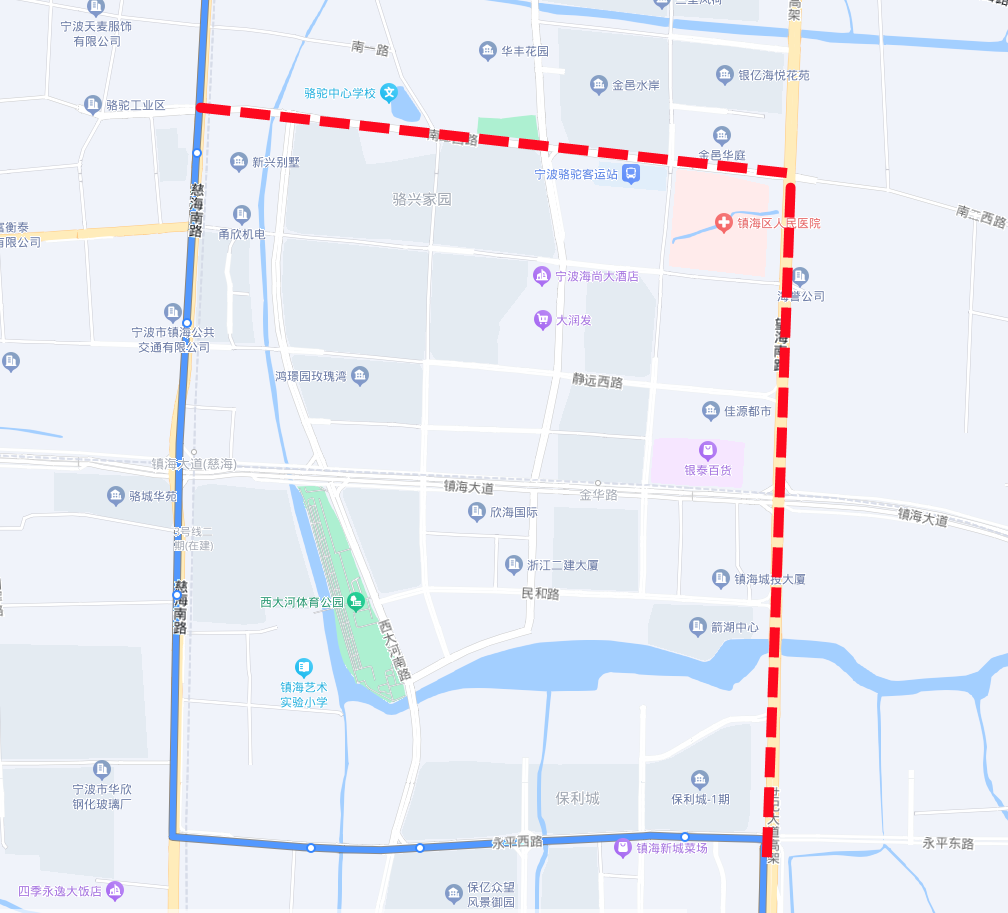 2、撤销部分西大河北路、西大河南路、民和路、金华南路、镇海大道走向及骆兴家园西大门、西大河公园、镇海市民广场西、镇海区政务服务中心停靠站点。