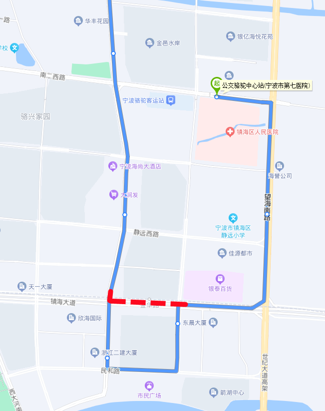 1、改道走向:民和路东邑南路口后双向改走东邑南路、镇海大道至镇海大道金华南路口后恢复原线运营。
