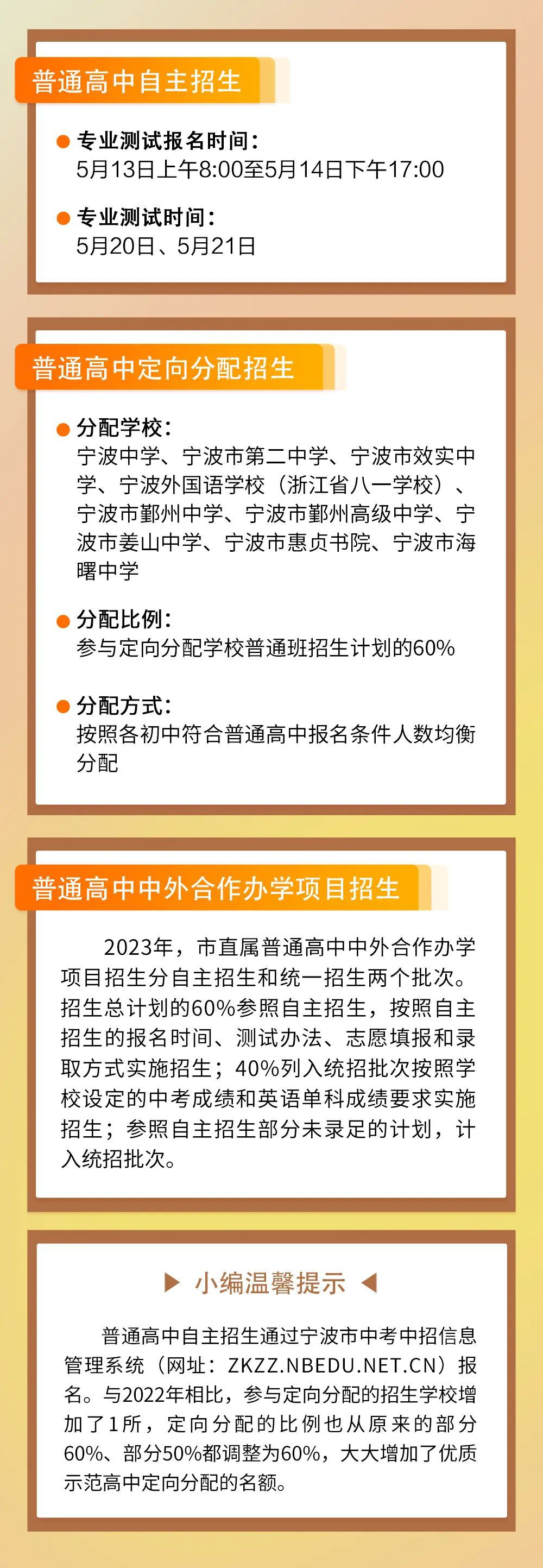 宁波市教育局下发《关于做好2023年直属高中段学校招生工作的通知》,明确了今年宁波市教育局直属高中段学校招生工作的各项时间节点,一起来看↓