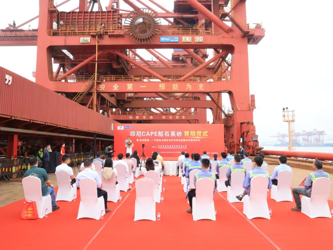 宁波舟山港作为全球货物吞吐量第一大港,是中国沿海主要港口和中国国家综合运输体系的重要枢纽,是中国进口铁矿石的主要中转储运基地之一。其中,矿石公司是宁波舟山港重要的大型进口铁矿石中转基地,大宗散货体系的主力军,码头规模大、设施功能全、接卸能力强、业务网络广,年货物吞吐量已突破1.2亿吨。与之合作的苏州铭洲供应链管理有限公司长期稳定地从印尼大量进口超白原矿石英砂,目前已占印尼石英砂出口总量的90%,同时占国内石英砂进口总份额的30%。