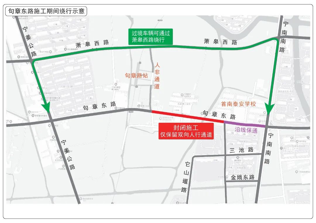 三、撤销部分句章东路、部分宁姜公路走向及句章东路宁南南路口、前周村(句章路地铁站)、茶亭庵站。 请社会各界和广大群众给予理解和支持,配合现场交通管理人员指挥,遵照现场交通标志指示通行。