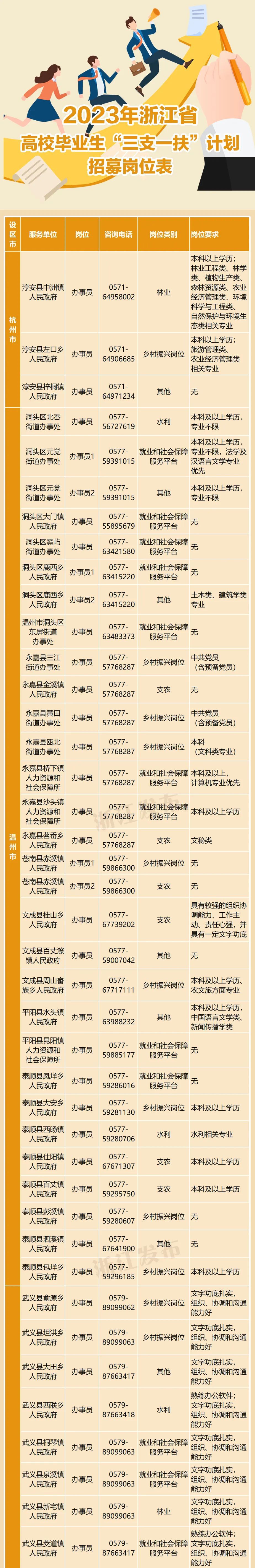 近日,省人力社保厅发布《2023年浙江省高校毕业生“三支一扶” 计划招募公告》,明确2023年计划招募150名高校毕业生到浙江山区、海岛县基层从事支教、支农(水利)、支医、帮扶乡村振兴等工作。一起来看↓