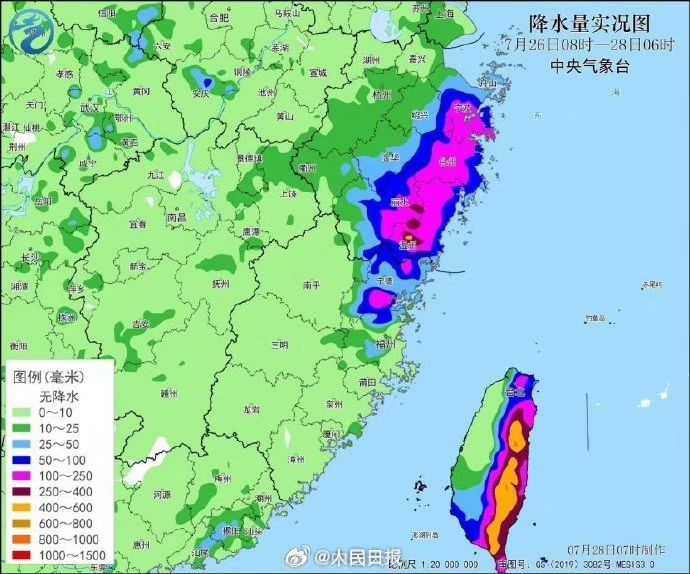 未来24小时内,温州、台州、丽水东部和南部、宁波南部有大到暴雨,部分大暴雨,个别特大暴雨。其它地区部分中到大雨,局部暴雨。