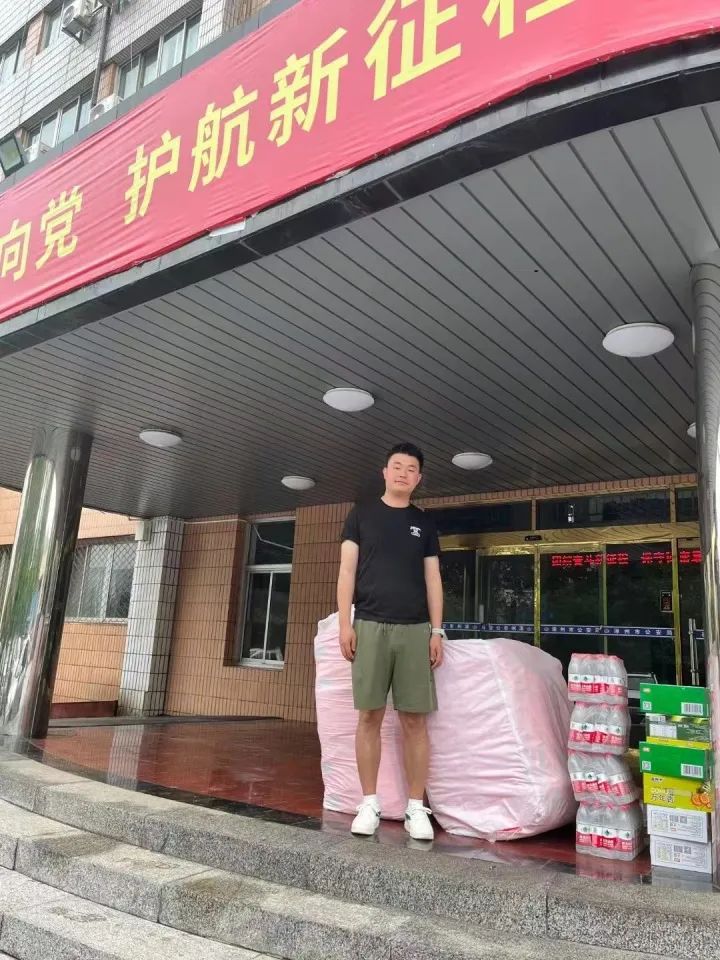 8月1日上午联系对接厂家,中午12点从浙江宁波驱车5个小时去往江苏盐城仓库,邓雷的suv上装了120件救生衣、5箱水、12箱饼干,傍晚6点半从盐城上高速去往受灾地河北涿州,通宵驰援千里,8月2日早晨6点抵达河北涿州。