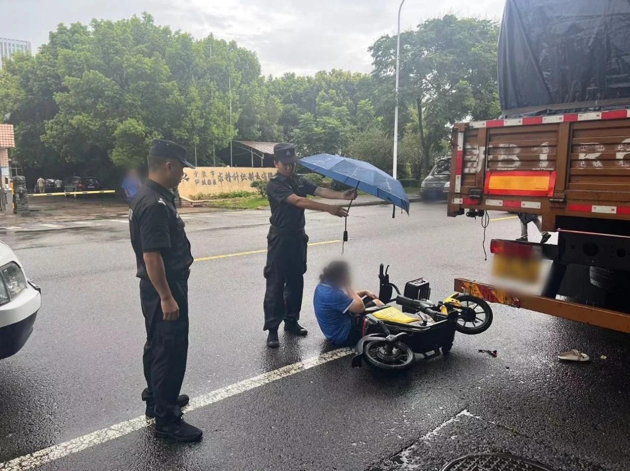 8月1日上午9点30分,在宁波高新区剑兰路光华路口发生了一起交通事故:受暴雨影响视线,一名女子骑着电瓶车意外撞上了停在路边的货车。