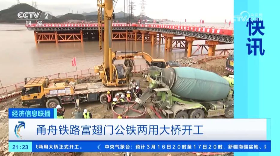 3月16日,央视《新闻联播》播出报道《甬舟铁路富翅门公铁两用大桥正式开工》,关注甬舟铁路富翅门公铁两用大桥今天正式开工。全长约76.4公里的甬舟铁路连接浙江宁波与舟山,预计2028年具备通车条件。届时,长三角目前唯一不通铁路的地级市舟山将加入全国铁路网。