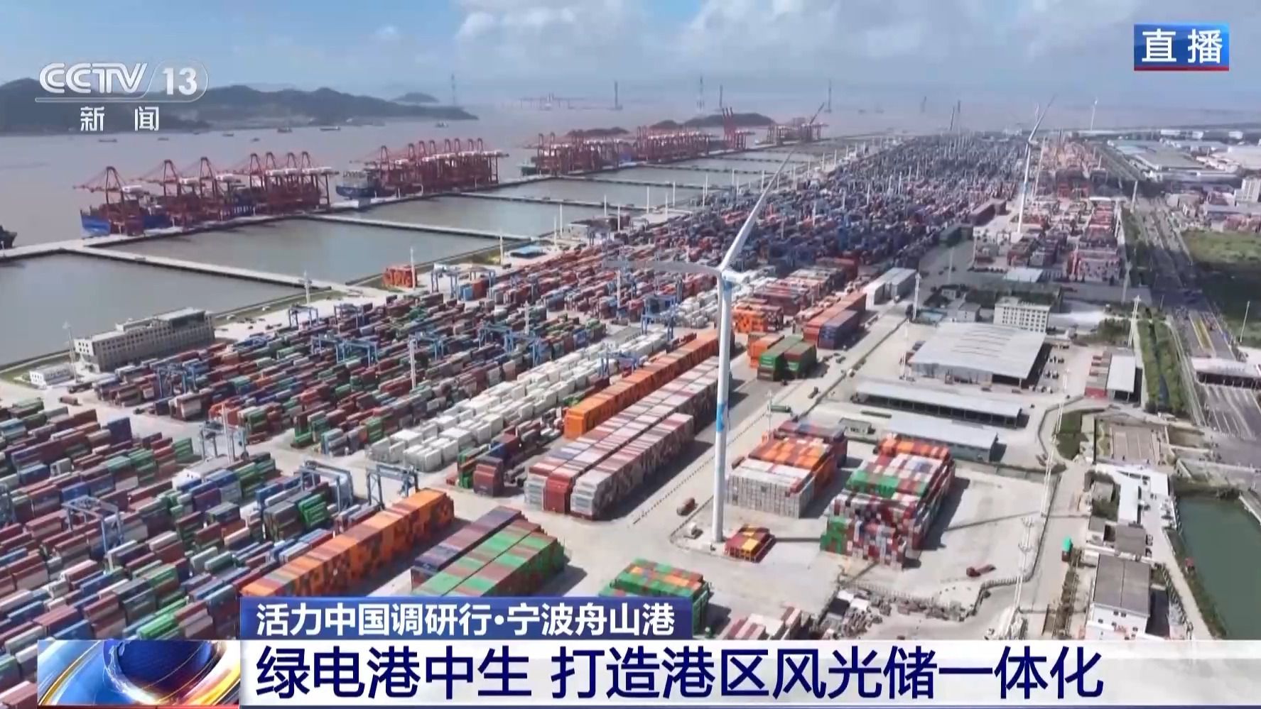 实际上从2023年开始,宁波舟山港就和国家电网共同打造“风光储一体化项目”。到目前为止,整座码头一共有5台风力发电机,每台风机单个叶片转动一圈就能产生9千瓦时的电能。