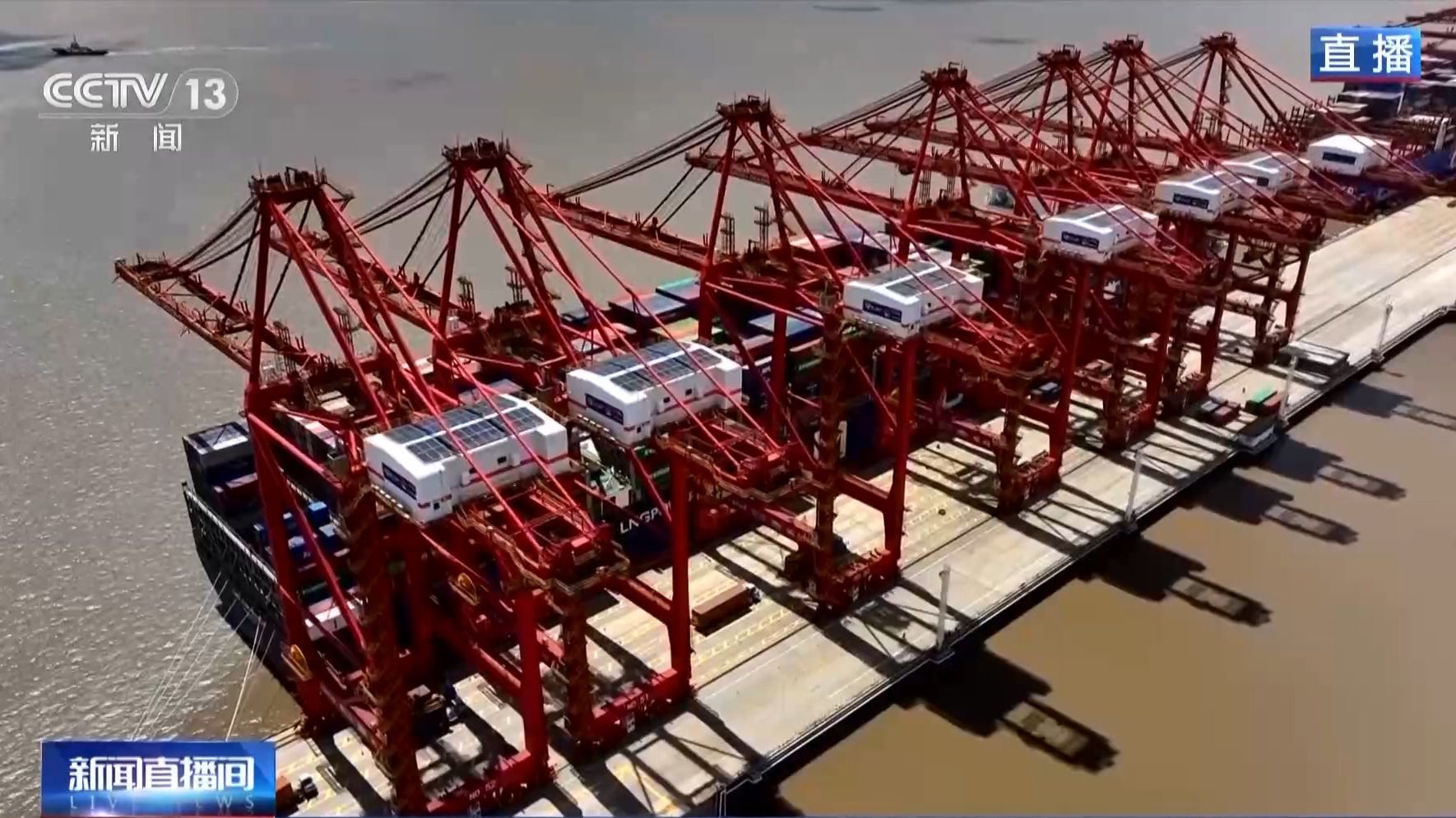 总台记者 胡浩然:通过航拍镜头可以看到,目前整个港区都在处于忙碌的作业状态之中。