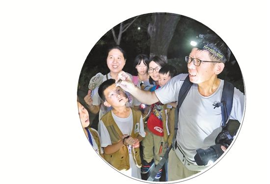 宁波市关爱“小候鸟”系列活动中,孩子们跟着“大山雀”张海华夜探昆虫。