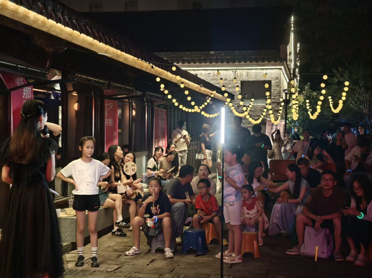 活动还融入了沉浸式诗朗诵与国乐创新表演,不仅增强了街区的文化氛围,也推动了历史街区的活化与更新。现场观众在星空下聆听,于音乐中感受,在诗句间思考,共同体验传统文化与现代都市生活的精彩融合。