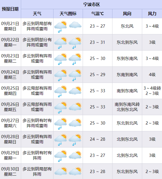 今天,宁波局部地区将有阵雨或雷雨,最高气温28℃。
