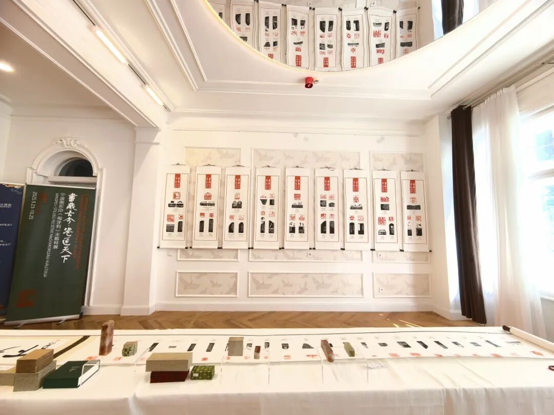 ▲“书藏古今・港通天下”宁波图形印特展亮相布达佩斯中国文化中心。