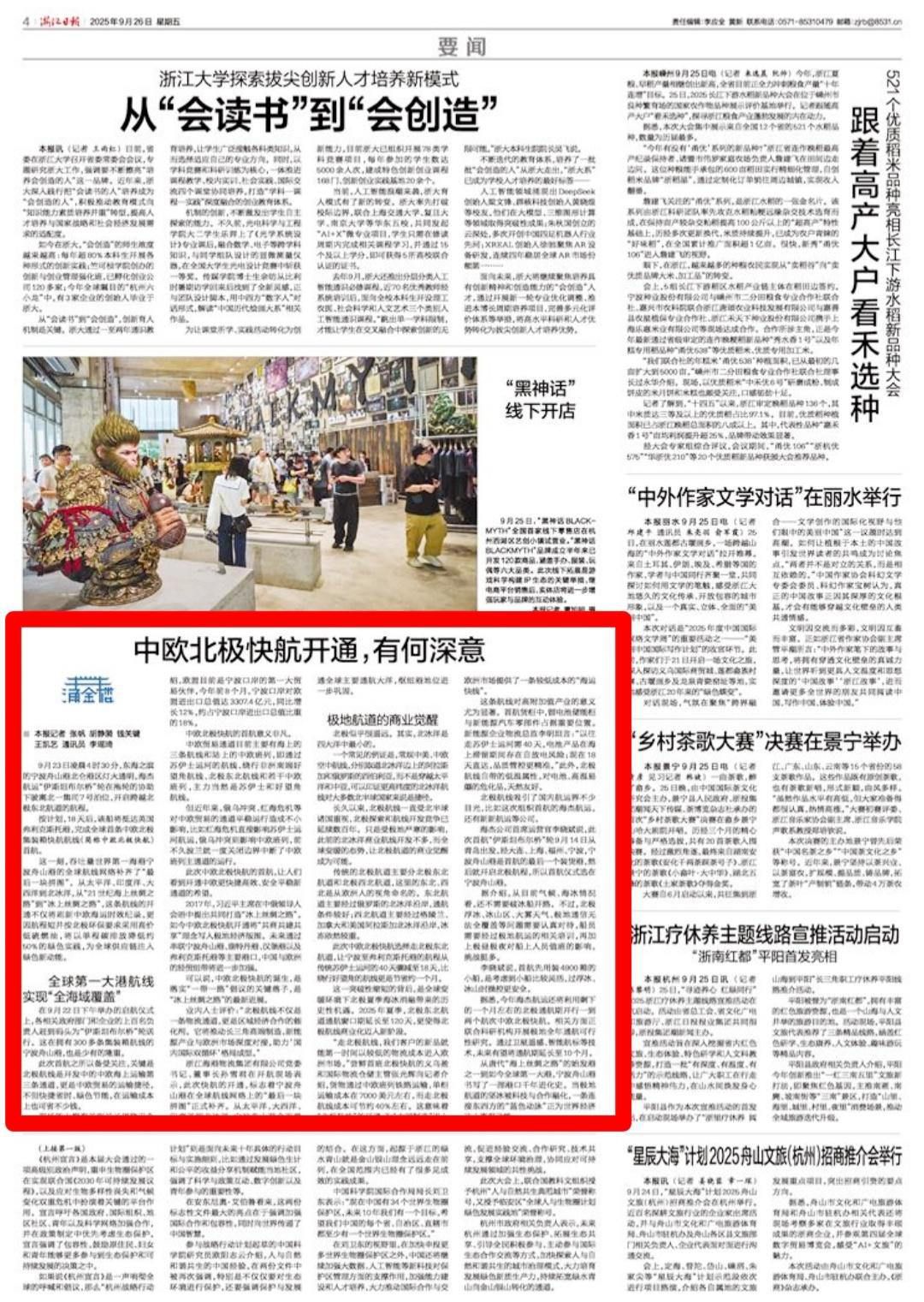 浙江海港物流集团有限公司党委书记、董事长孙雪君在开航现场表示,此次快航的开通,标志着宁波舟山港在全球航线网络上的“最后一块拼图”正式补齐。从太平洋、大西洋、印度洋到北冰洋,宁波舟山港全面贯通全球主要通航大洋,枢纽港地位进一步巩固。