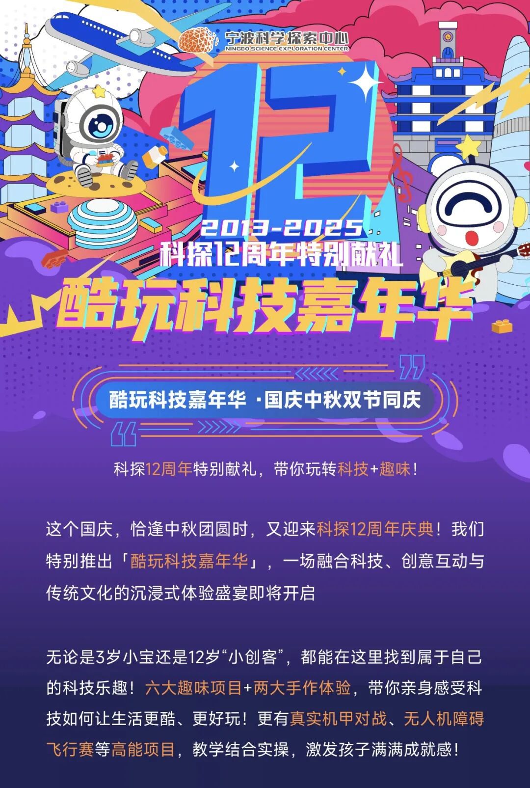 国庆中秋假期,宁波科学探索中心推出“酷玩科技嘉年华”,专为3-12岁儿童及家庭量身打造。