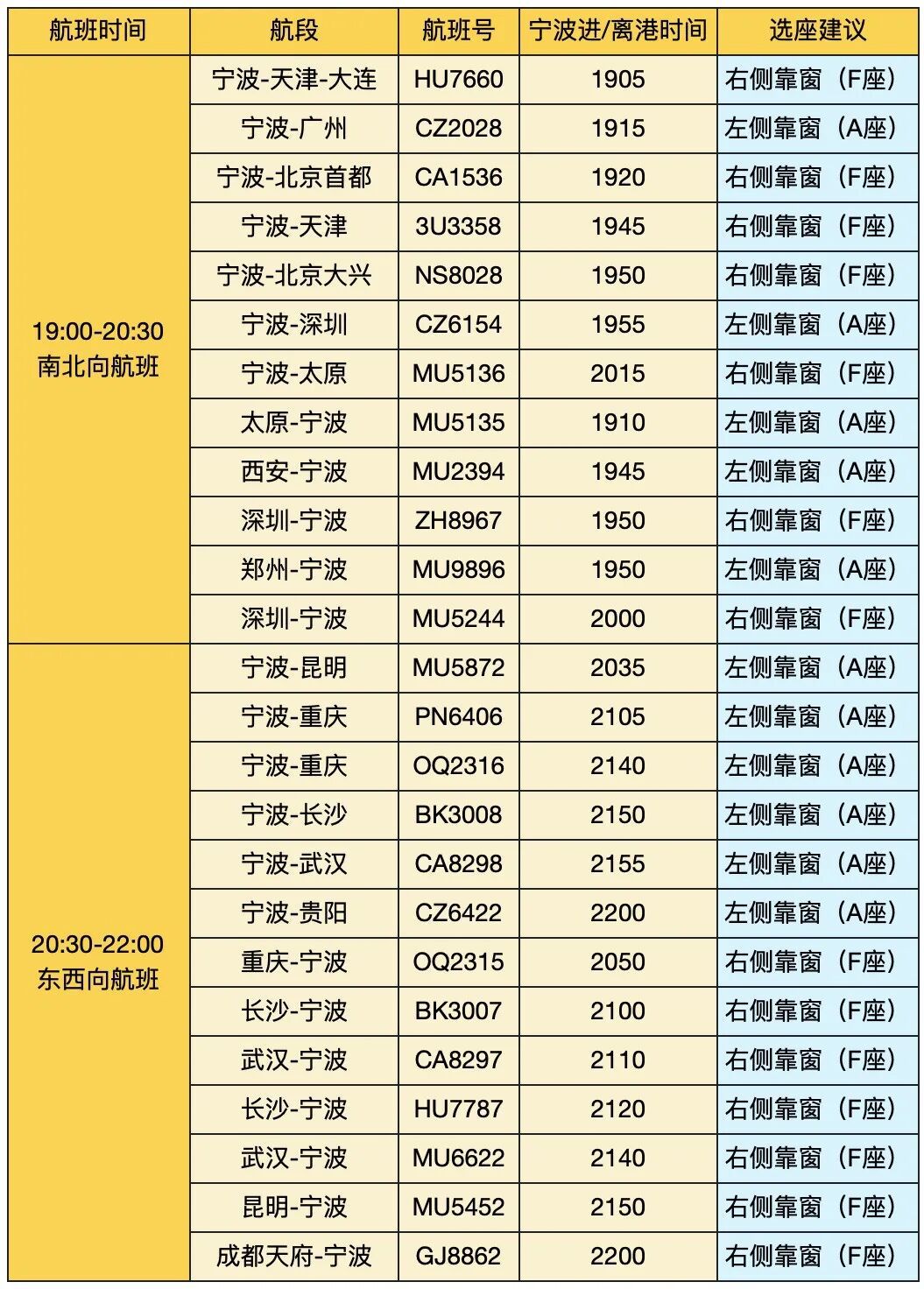 以10月6日当晚宁波栎社国际机场起降的航班为例,这些“赏月航班”值得推荐: