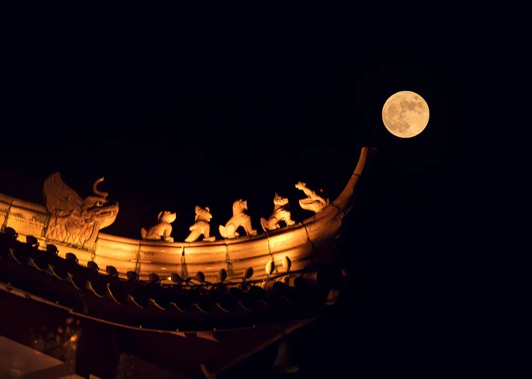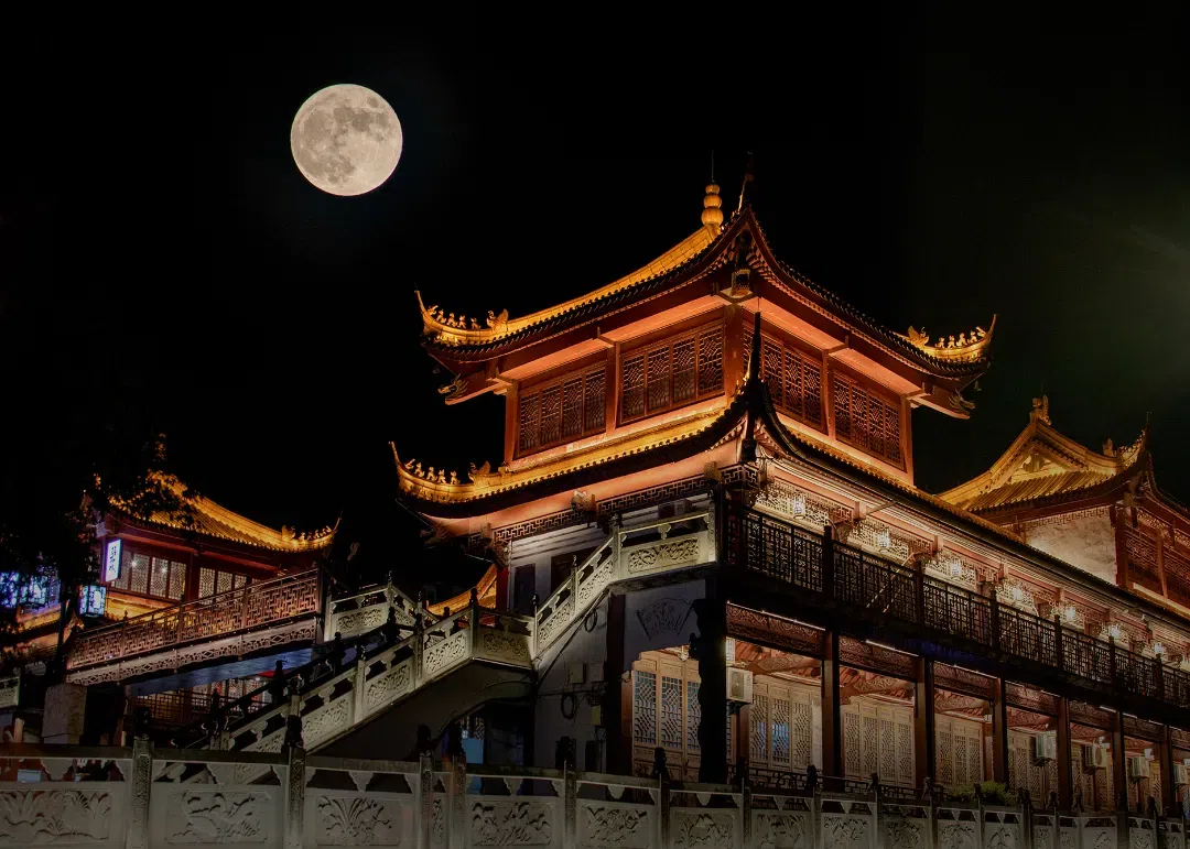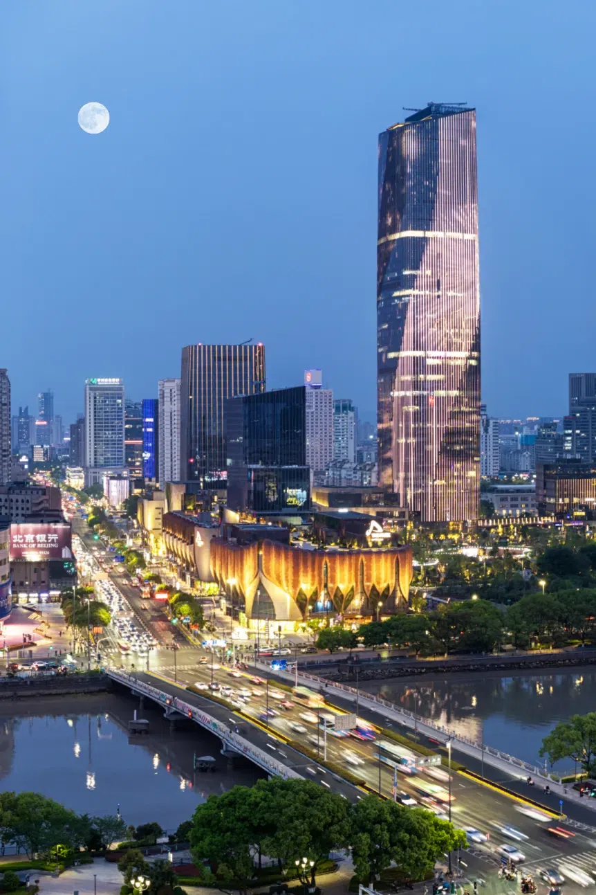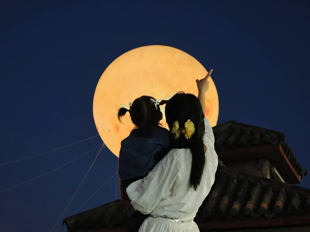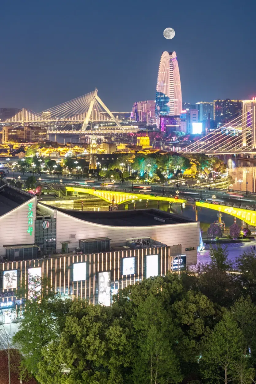 ▲直径8米的巨型月亮装置亮相三江口。宁波发布特约摄影师 陈乾斌/摄