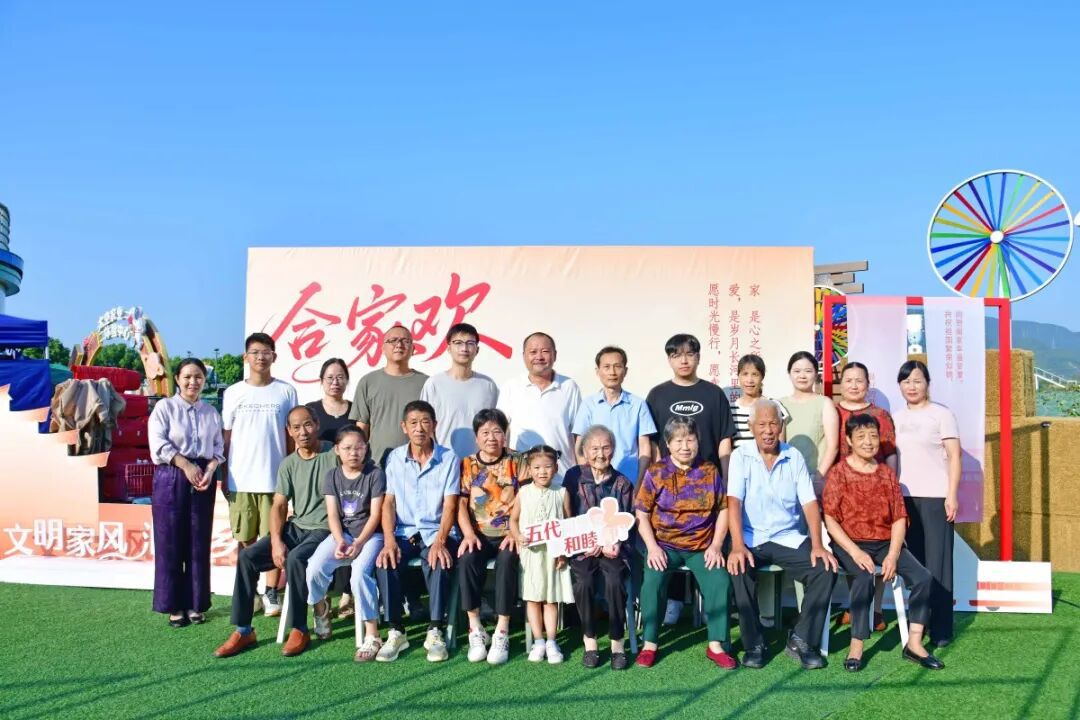 拍摄现场,村民们的说笑声此起彼伏,处处洋溢着节日的喜庆。就坐在前排的银发老人中,102岁的徐秀凤格外引人注目,在小辈们的悉心陪伴下,她精神矍铄,笑容慈祥。子孙们环绕在她身边,家里最小的玄孙女拉着她的手,形成了“五代同堂”的动人画面。