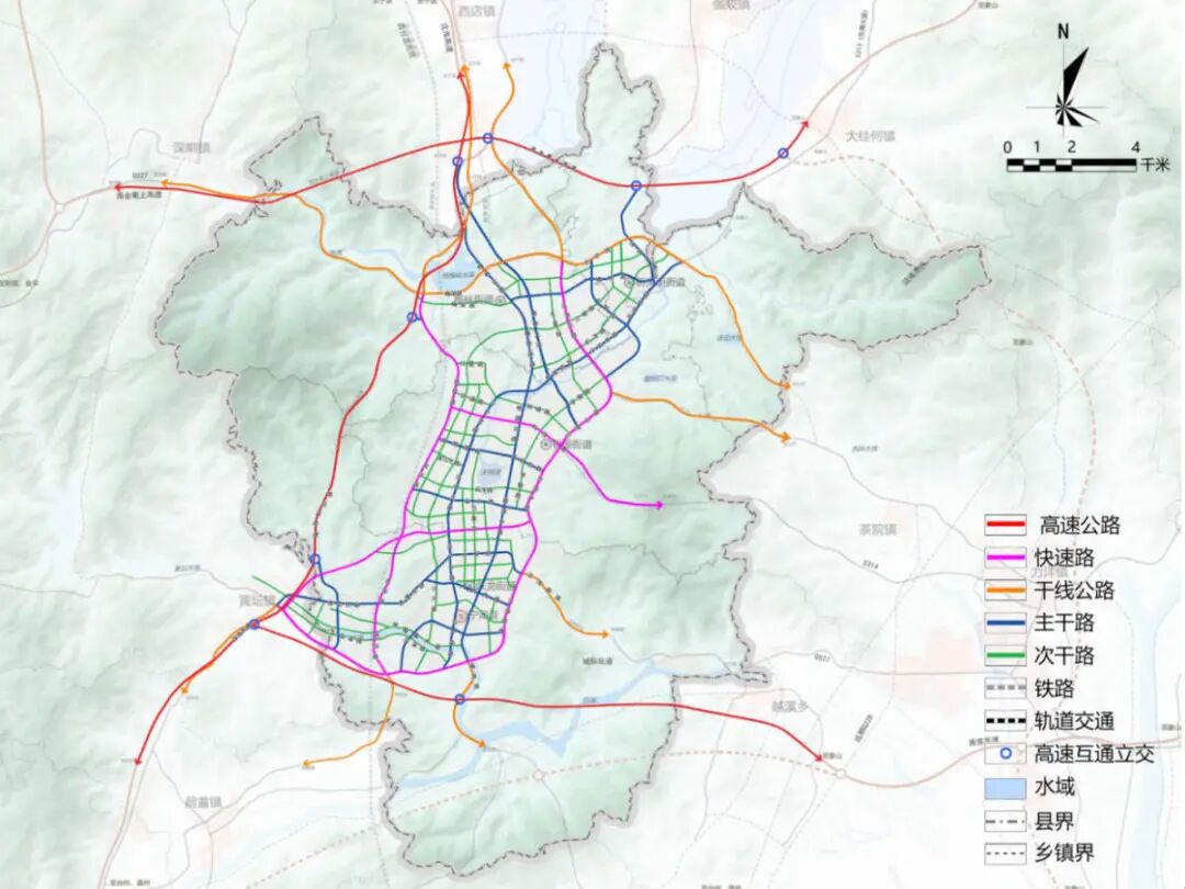 对外,规划新增宁波市域(郊)轨道、甬台温高铁、甬金衢上高速,推进甬台温高速向西改线,加强跨区域通道建设;对内,构建“一环六纵十横二十射”的放射环式路网结构,加强基础交通设施的体系化、品质化、低碳化、智慧化发展。