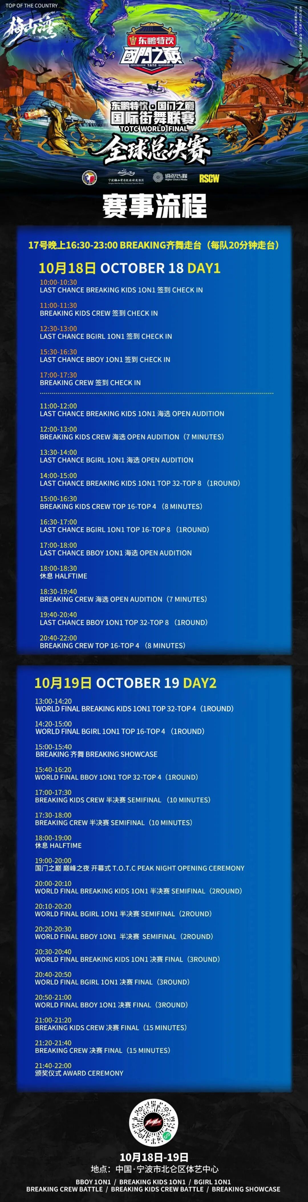 10月19日:进行半决赛、总决赛,20万总奖金归属、冠军荣耀加冕都将在当晚揭晓,还有开幕式点燃全场氛围。