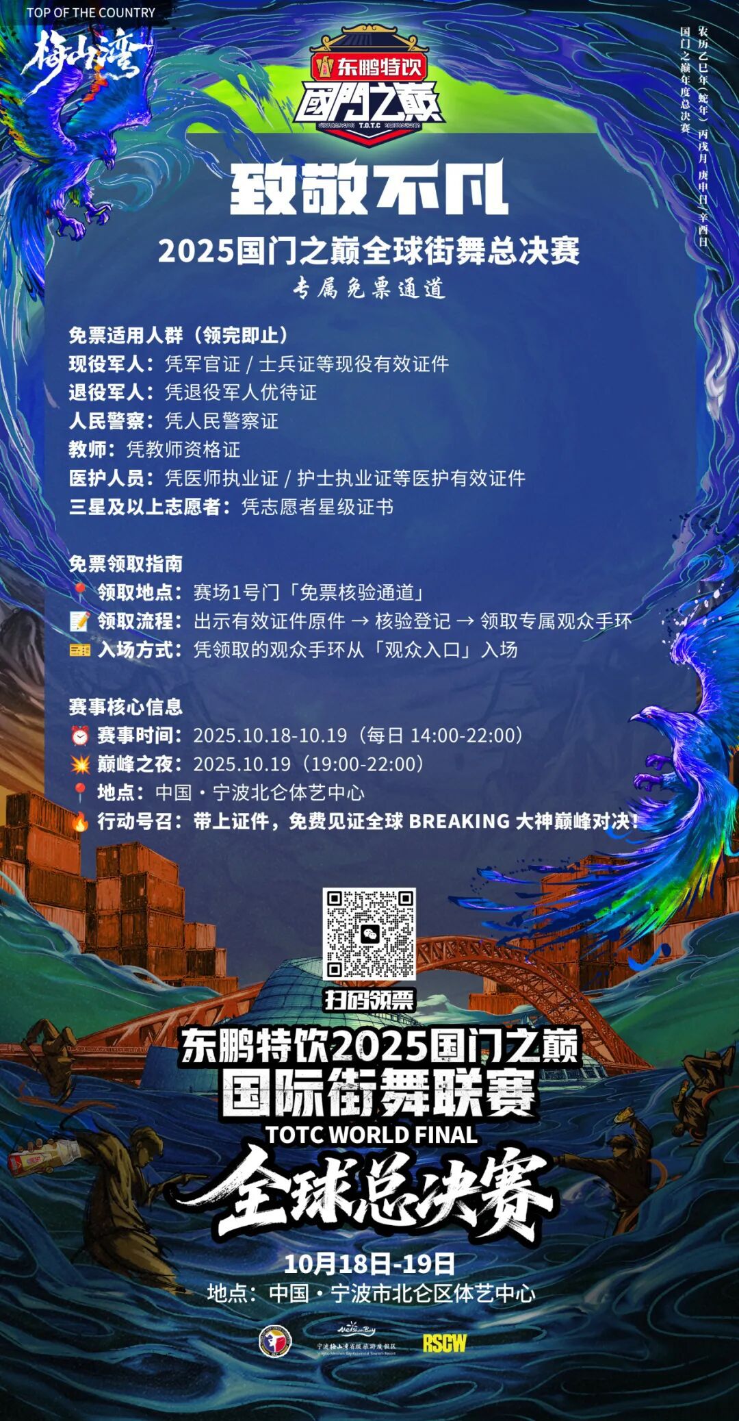 登录大麦网,搜索 “2025国门之巅国际街舞联赛全球总决赛” 即可购票,数量有限,售完即止。