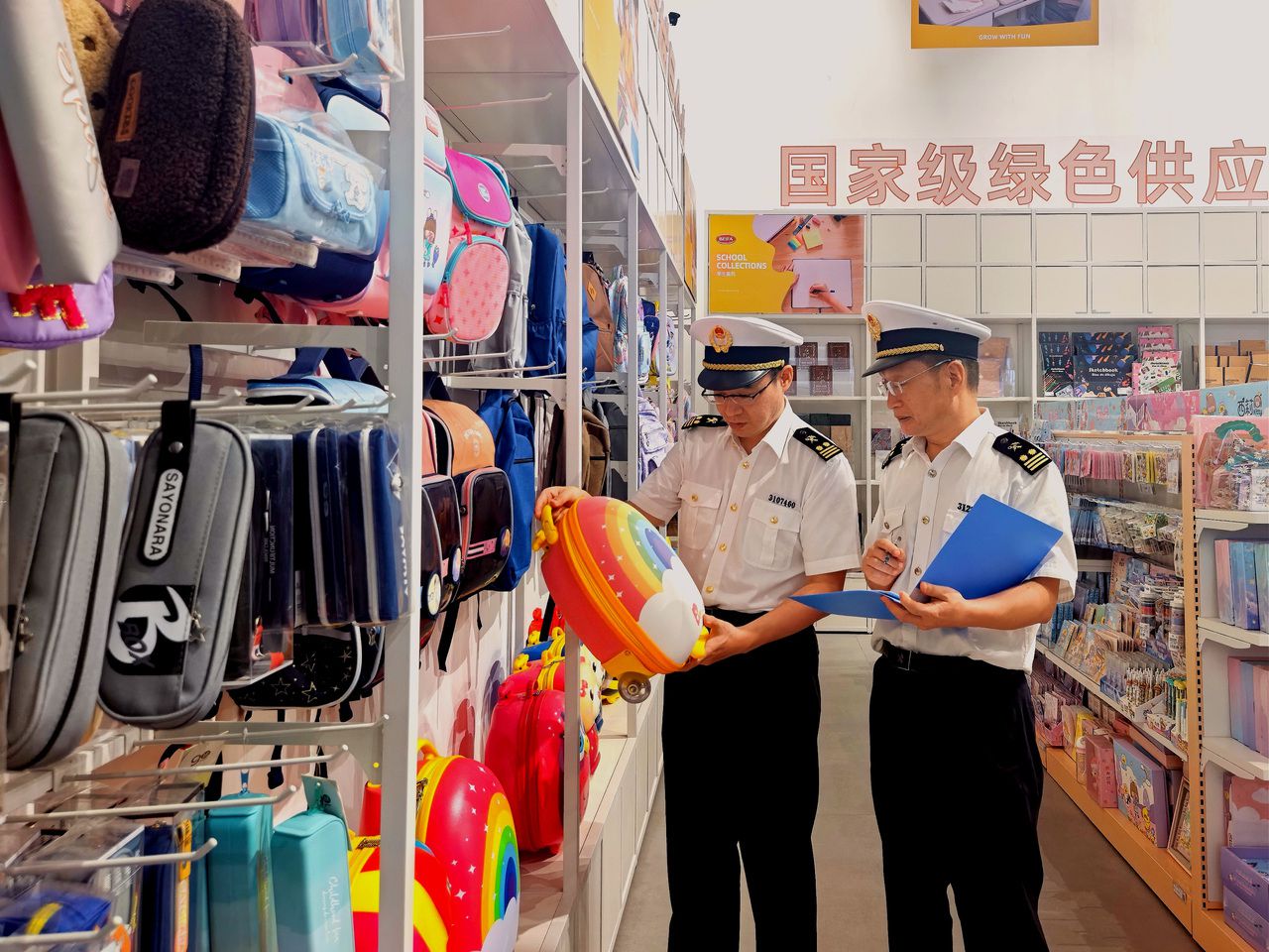 宁波海关关员在企业展厅查看样品。洪莹 摄