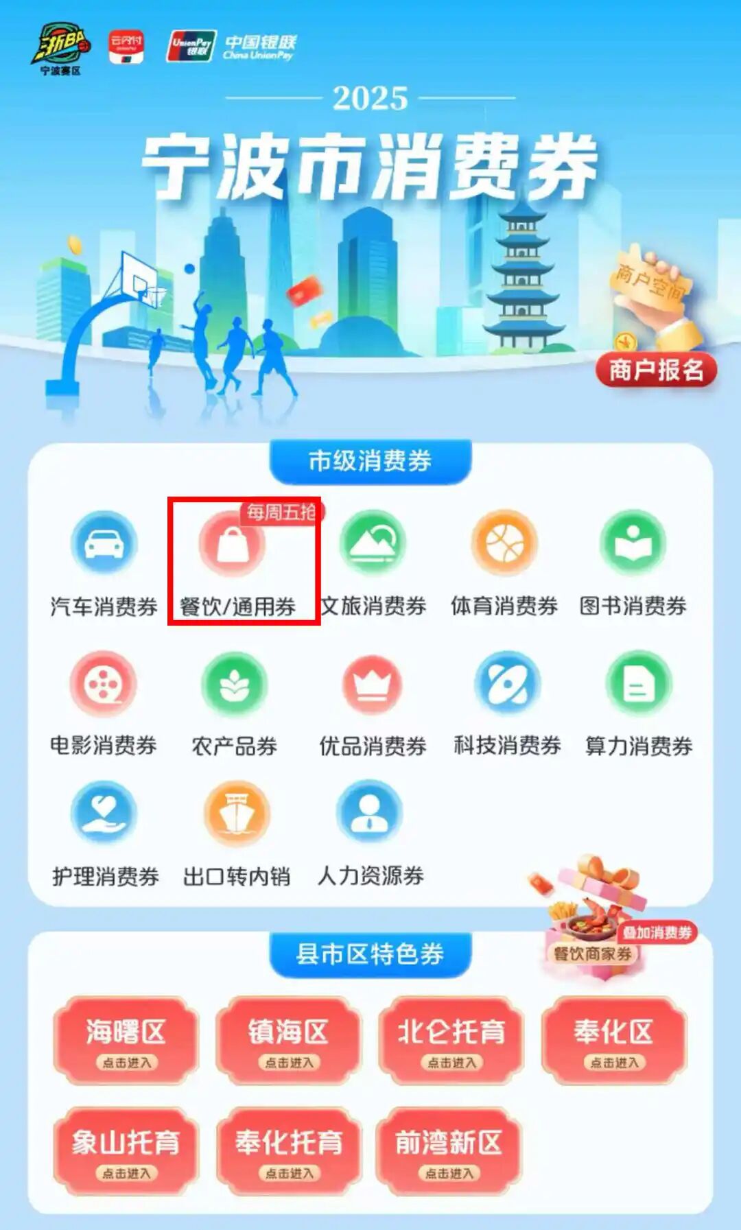 此外,餐饮消费达标后,大家还可在“通用和餐饮券”专题页抽取宁波活力餐饮消费券。