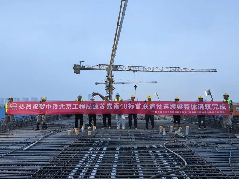 此次首联道岔连续梁的成功合拢,不仅为后续同类结构施工积累了宝贵的“标杆样本”经验,将大幅提升后续施工的效率与质量稳定性,更重要的是,它成功打通了项目后续架梁施工的关键通道,为架梁设备的顺利通过和后续作业铺平了道路,有力推动了慈溪特大桥向着全线结构贯通的总体目标迈出了至关重要的一步。