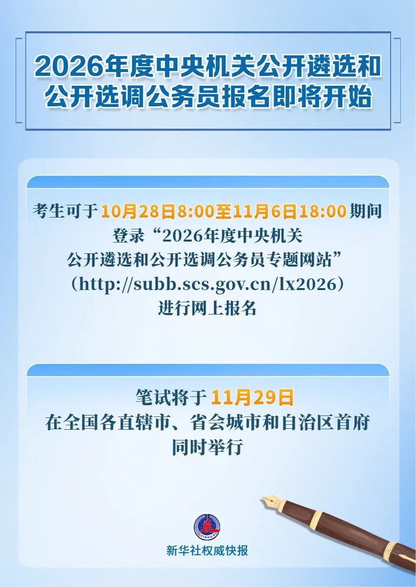 根据公务员法和《公务员转任规定》《公务员调任规定》《公务员公开遴选办法》,国家公务员局决定开展2026年度中央机关公开遴选和公开选调公务员工作。现将有关事项公告如下: