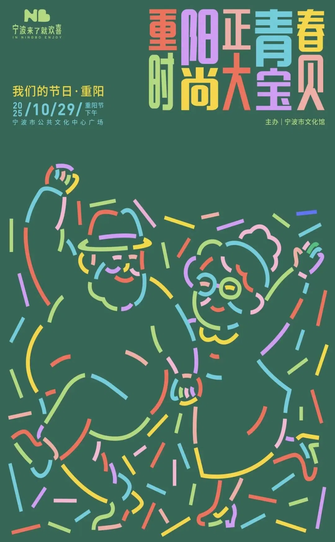 “重阳正青春·时尚大宝贝”活动暖心来袭!文化馆邀请了99对夫妻参与“从黑白到璀璨”幸福瞬间复刻,补拍婚纱照,定格爱意。宁波市公共文化中心广场还设有展演活动,银发合唱团和小朋友将合唱《少年》,还有非遗、民乐、舞蹈、戏曲、时装秀轮番绽放银发魅力。