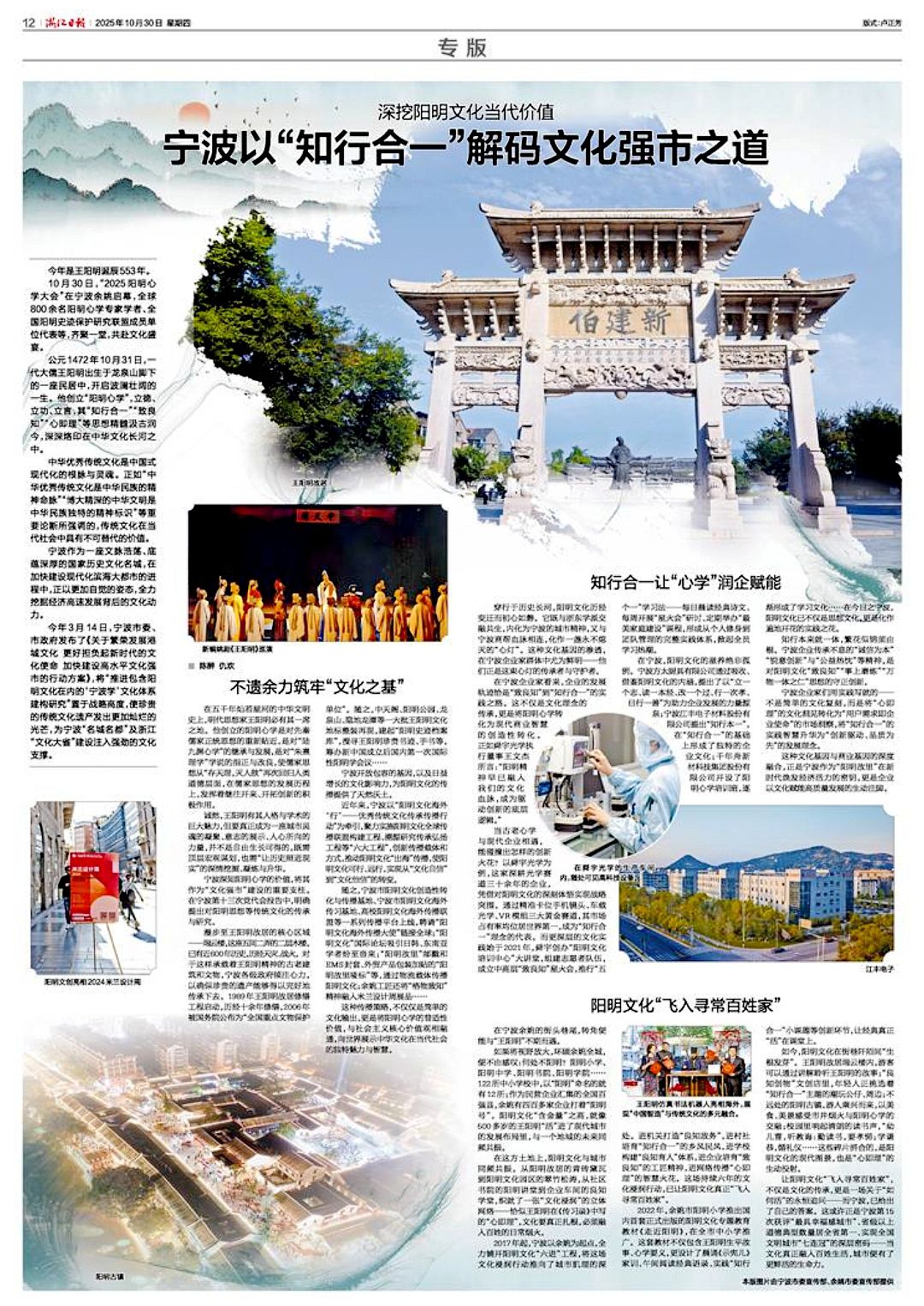 让阳明文化“飞入寻常百姓家”,不仅是文化的传承,更是一场关于“如何活”的永恒追问——而宁波,已给出了自己的答案。这或许正是宁波第15次获评“最具幸福感城市”、省级以上道德典型数量居全省第一、实现全国文明城市“七连冠”的深层密码——当文化真正融入百姓生活,城市便有了更鲜活的生命力。