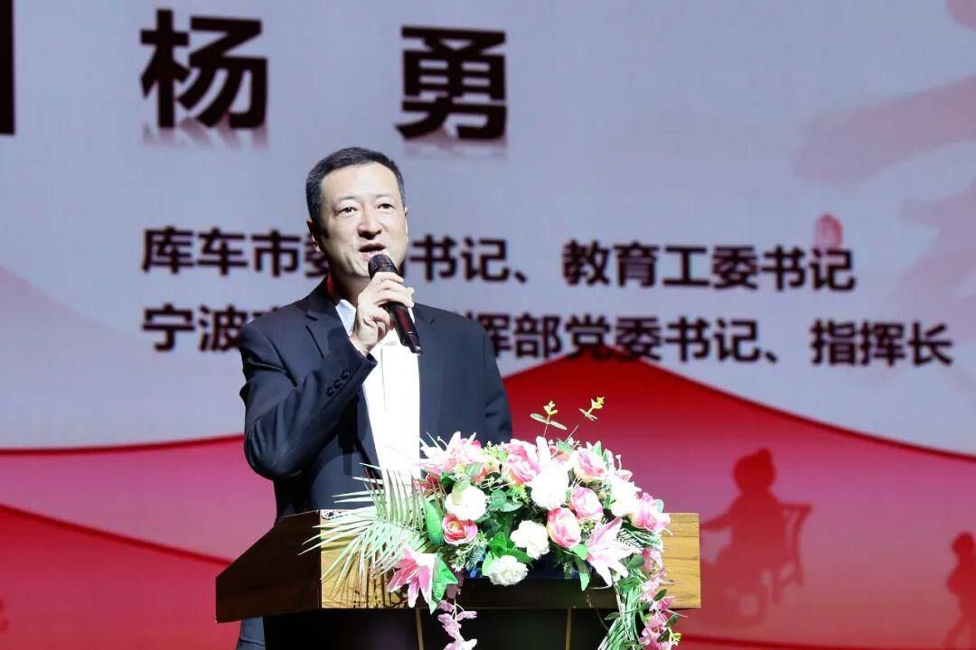 杨勇在致辞中表示,自2010年宁波对口支援库车以来,宁波市援疆指挥部始终把教育援疆放在十分重要的位置,累计为库车教育投入援疆资金6.5亿元、选派援疆教师358名,重点打造了四所全链式示范性校园,显著改善了30多所库车中小学的办学条件和文化设施,带动培养了一大批好教师、好校长和社会公认的好学校,助力库车一跃成为南疆县域教育新高地。他特别指出,2023年7月慈孝书院的揭牌标志着其独立办学的新起点。书院秉承“慈孝养心、知恩善行”校训,将慈孝文化深度融入校园建设与日常教学,已发展成为库车一流、南疆示范的标杆学校。