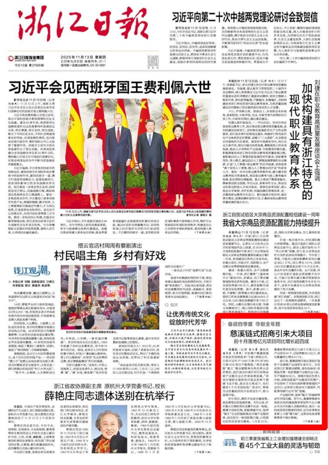 为提升产业链招商的精准度和效率,慈溪率先推出“链长制”工作机制,由一位市领导领衔一条重点产业链,通过组建跨部门招商工作组,为大项目招引提供即时决策服务。