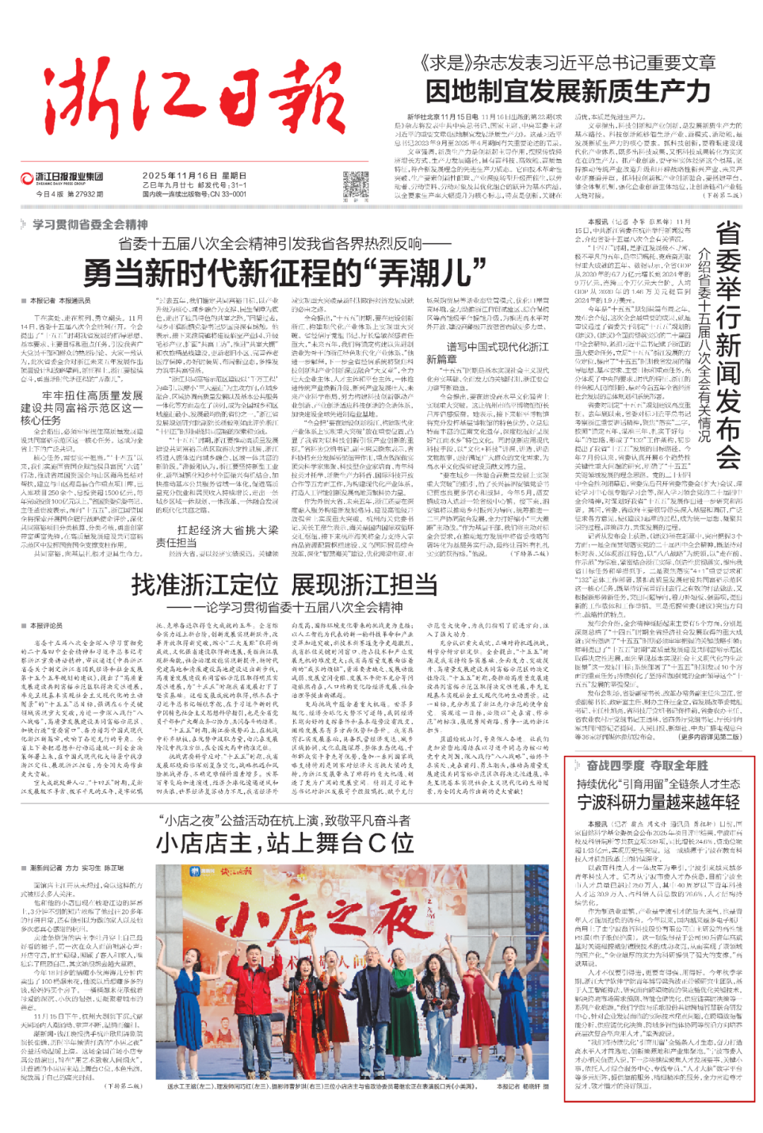 今天(11月16日),《浙江日报》头版“奋战四季度 夺取全年胜”专栏刊发文章《持续优化“引育用留”全链条人才生态 宁波科研力量越来越年轻》,报道了日前,国家自然科学基金委员会公布2025年项目评审结果,宁波市高校及科研院所等共获立项329项,同比增长24.6%,资助总额超1.43亿元,实现历史性突破。这一成绩源于宁波在教育科技人才机制改革上的持续深化。