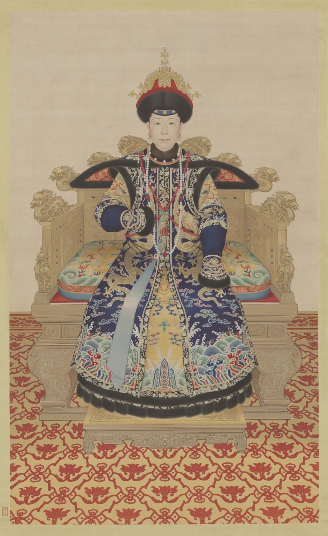 画像中的人物是孝圣宪皇后钮祜禄氏。她是清朝开国功臣额亦都的曾孙女,十三岁成为胤禛(即后来的雍正帝)的侍妾,康熙五十年生弘历,即乾隆皇帝。雍正即位后,先封她为熹妃,后又晋封为熹贵妃。乾隆帝登基后,遵照雍正遗命,尊奉她为皇太后,并上徽号“崇庆皇太后”。