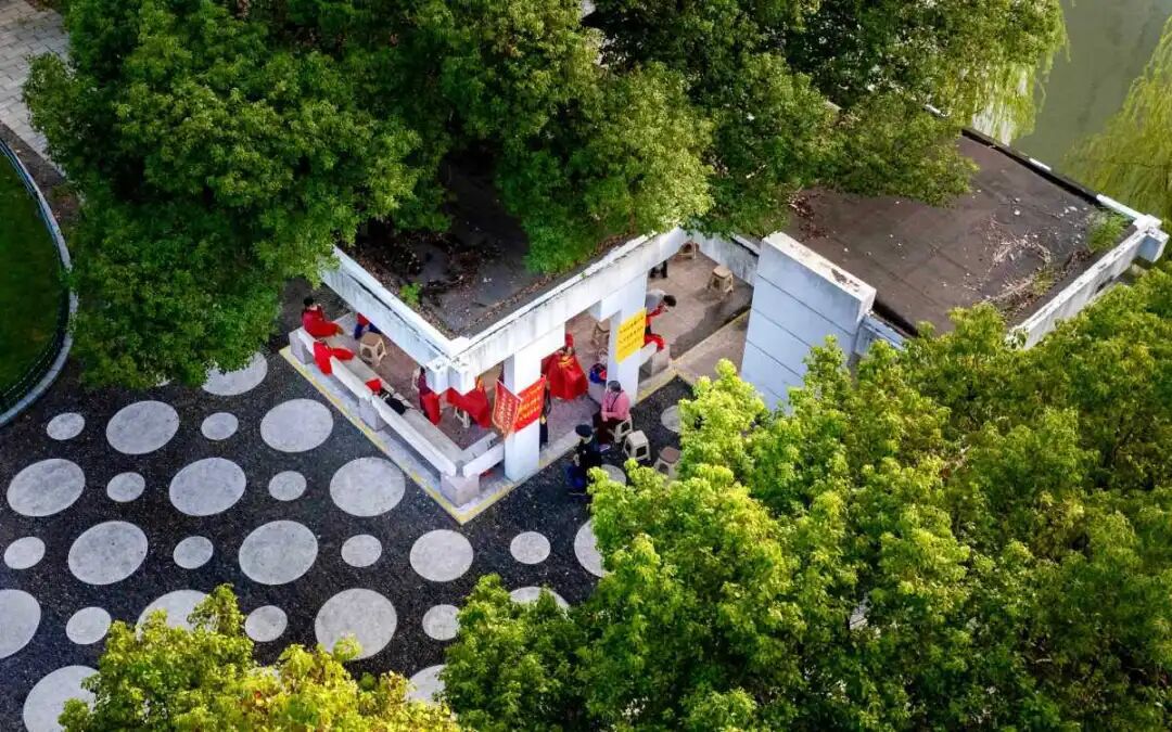 宁波海曙公园的凉亭下