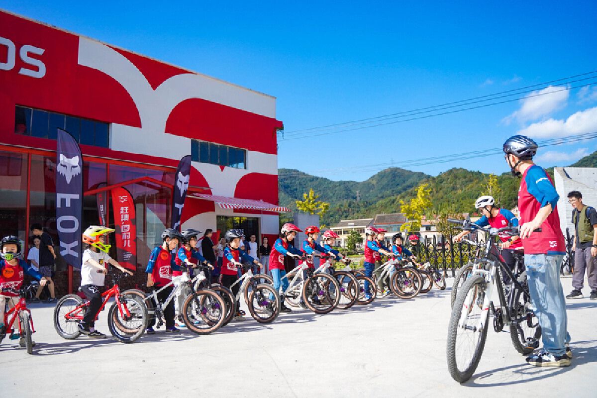 在深溪村飞鸟骑行公园,专业教练正在指导学员进行泵道骑行体验。