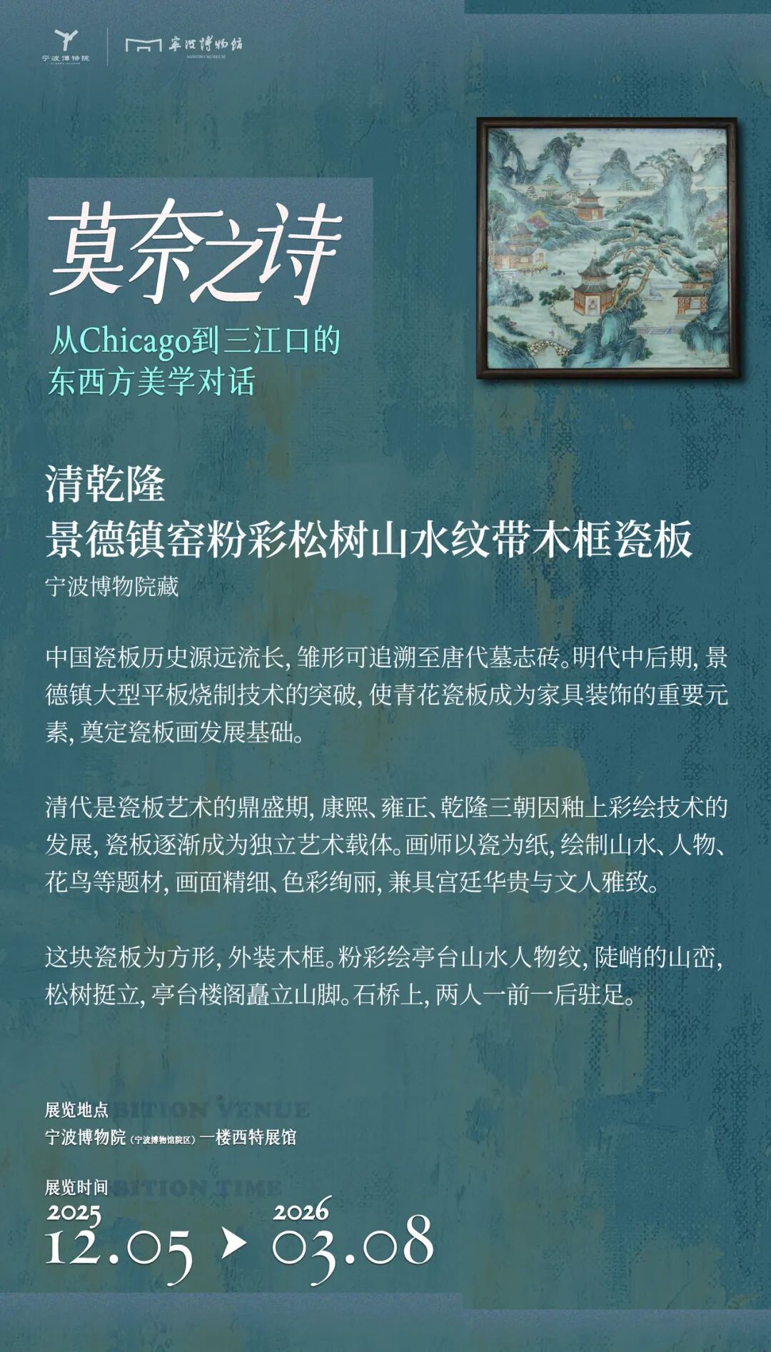 展览名称:“紫禁韶华——清宫文物宁波贺岁”展和“莫奈之诗:从Chicago到三江口的东西方美学对话”展