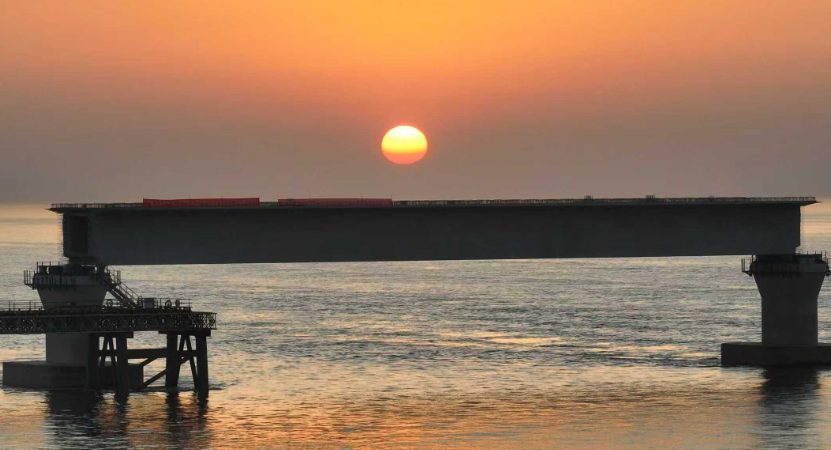 夕阳映照下的杭州湾,绵延的施工栈桥如蛟龙入海,已架设的箱梁在午后阳光下熠熠生辉。这座未来将承载高铁列车飞驰的超级工程,正在世界强潮海湾书写中国桥梁建设的新传奇。它的建设不仅展现了中国基建的技术实力,更将有力推动长三角一体化发展,为区域经济高质量发展注入新动能。