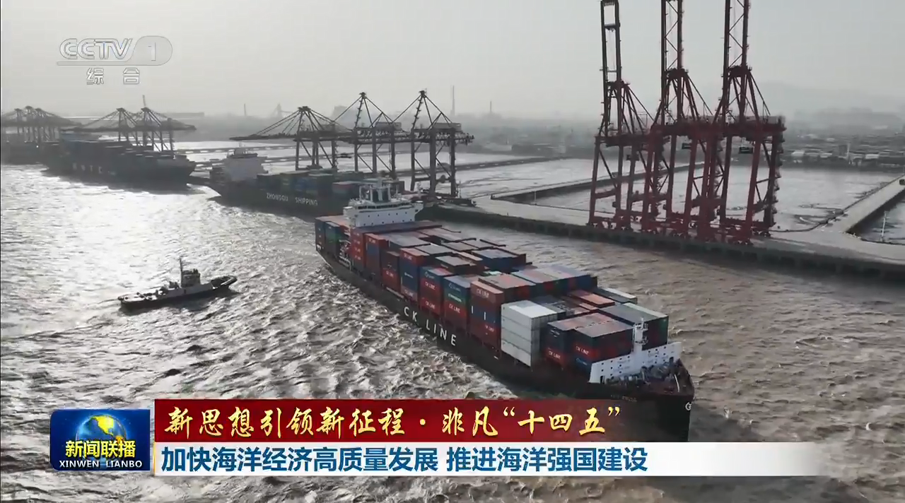 12月2日,央视《新闻联播》栏目播出《新思想引领新征程·非凡“十四五” 加快海洋经济高质量发展 推进海洋强国建设》,其中报道了随着汽笛鸣响,从宁波舟山港出发、装载着义乌小商品的“天敬天骄”轮启程前往印尼雅加达。义乌至宁波舟山港的海铁联运线路,已成为国内首条跨越“百万标箱”门槛的海铁联运线路。